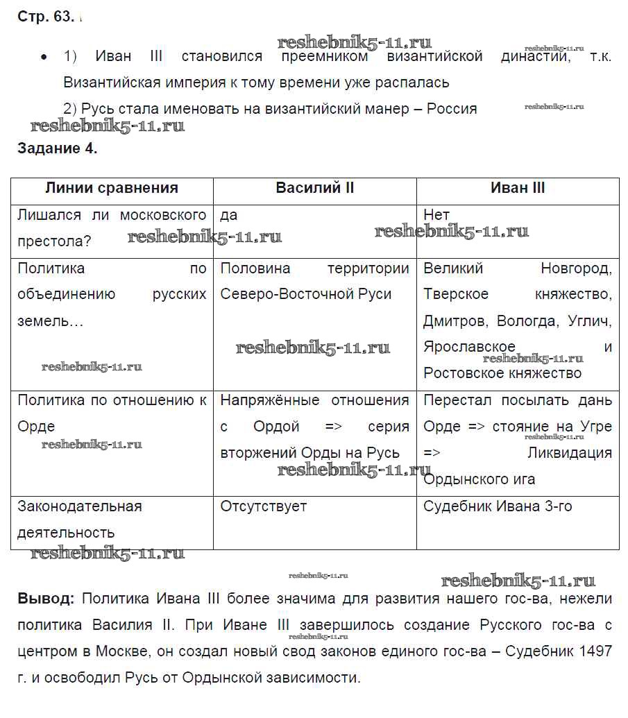 Готовая домашняя работа с ответами по Истории за 6 класс Артасов Контрольные работы УМК Просвещение 2016 ФГОС - Страницы 63