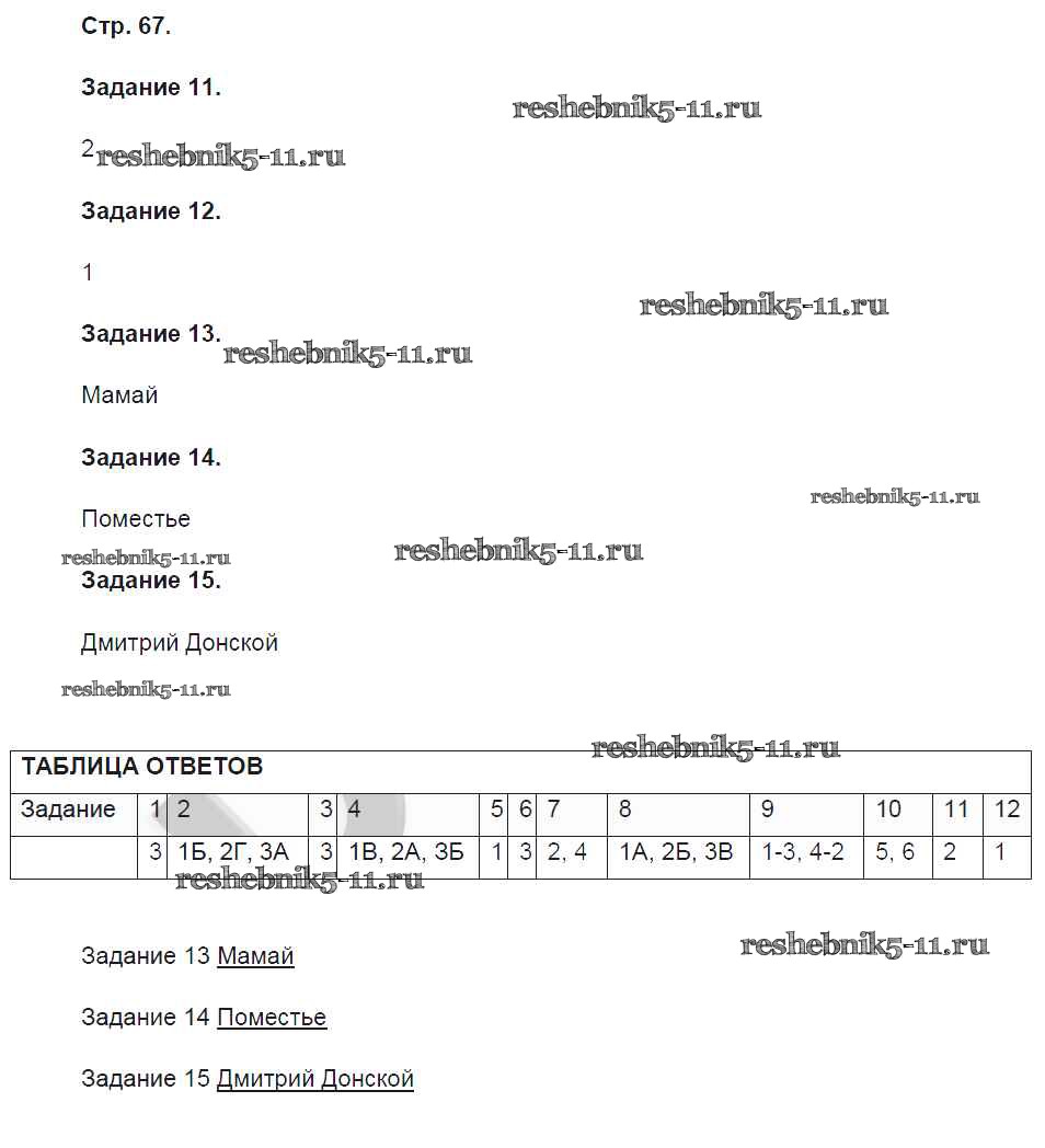 Готовая домашняя работа с ответами по Истории за 6 класс Артасов Контрольные работы УМК Просвещение 2016 ФГОС - Страницы 67