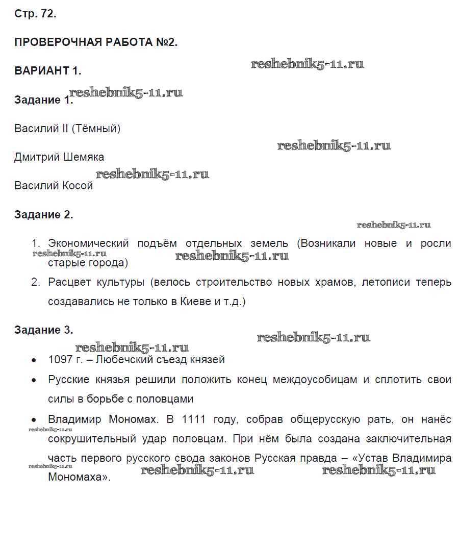 Готовая домашняя работа с ответами по Истории за 6 класс Артасов Контрольные работы УМК Просвещение 2016 ФГОС - Страницы 72