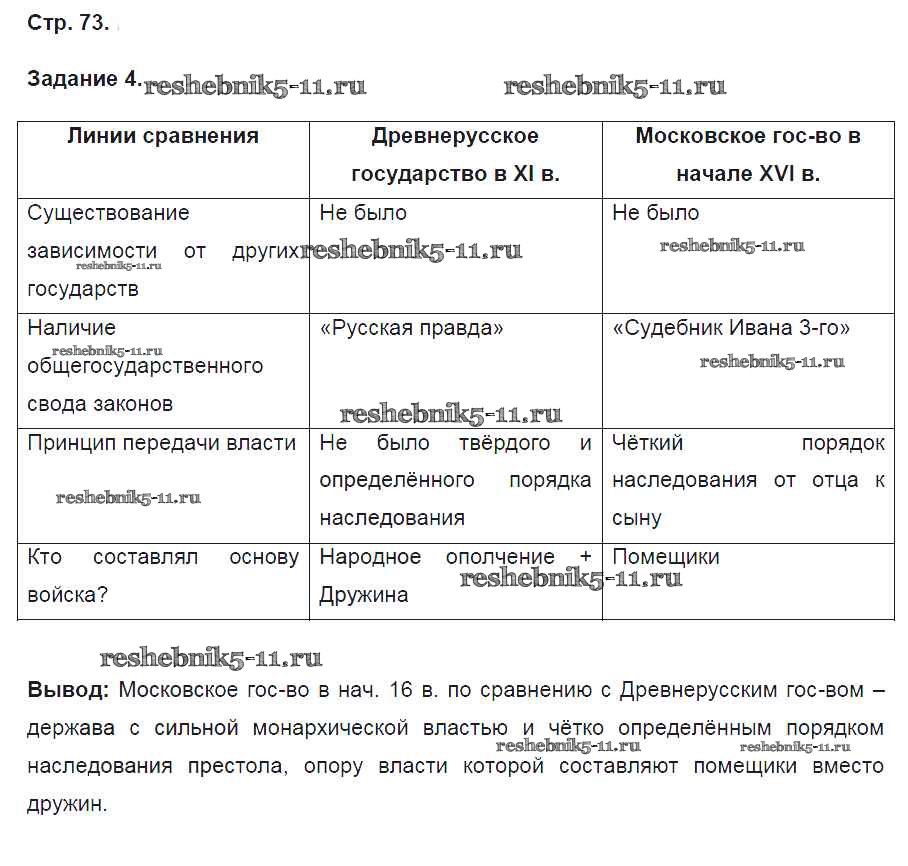Готовая домашняя работа с ответами по Истории за 6 класс Артасов Контрольные работы УМК Просвещение 2016 ФГОС - Страницы 73