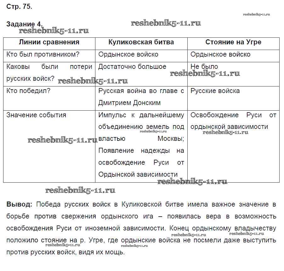 Готовая домашняя работа с ответами по Истории за 6 класс Артасов Контрольные работы УМК Просвещение 2016 ФГОС - Страницы 75