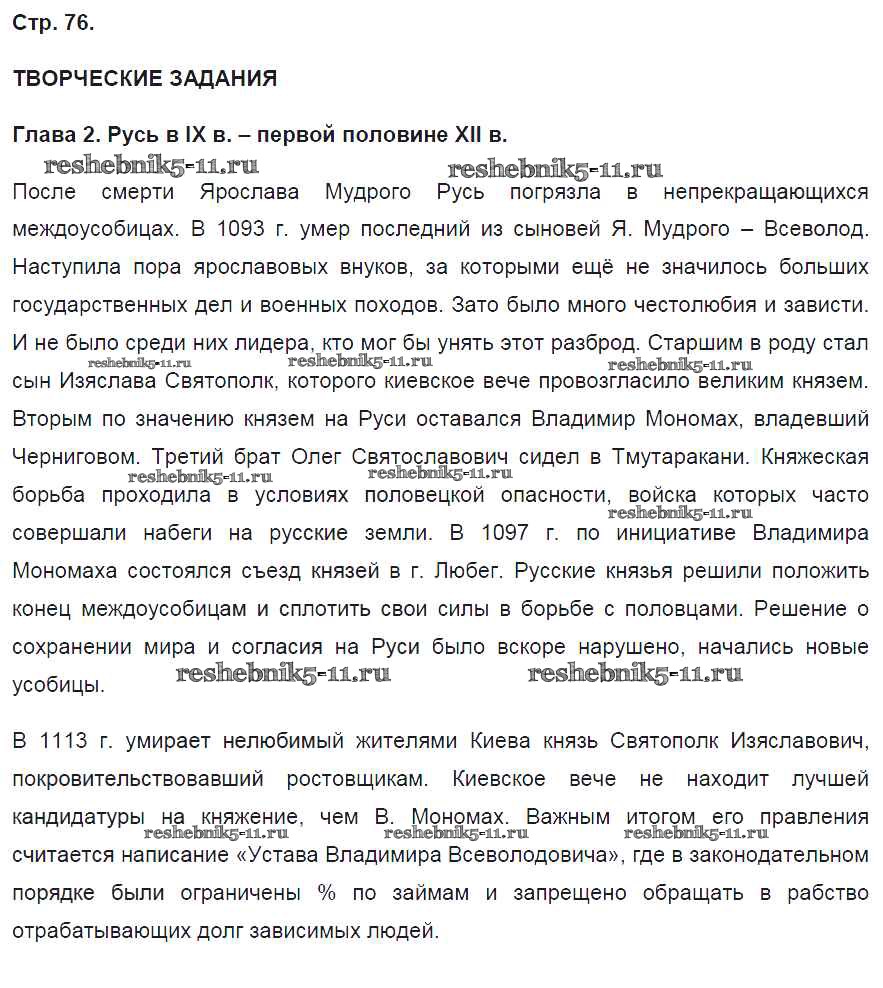 Готовая домашняя работа с ответами по Истории за 6 класс Артасов Контрольные работы УМК Просвещение 2016 ФГОС - Страницы 76