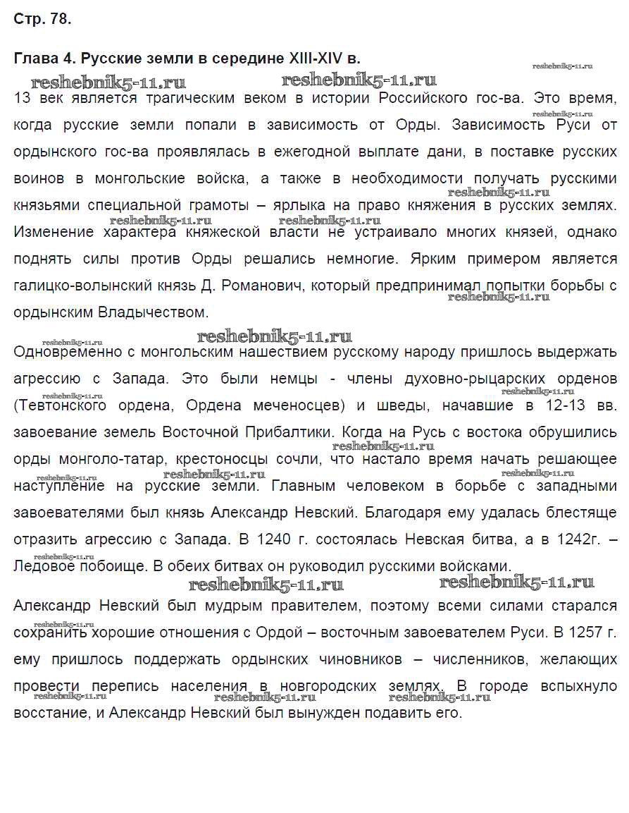 Готовая домашняя работа с ответами по Истории за 6 класс Артасов Контрольные работы УМК Просвещение 2016 ФГОС - Страницы 78