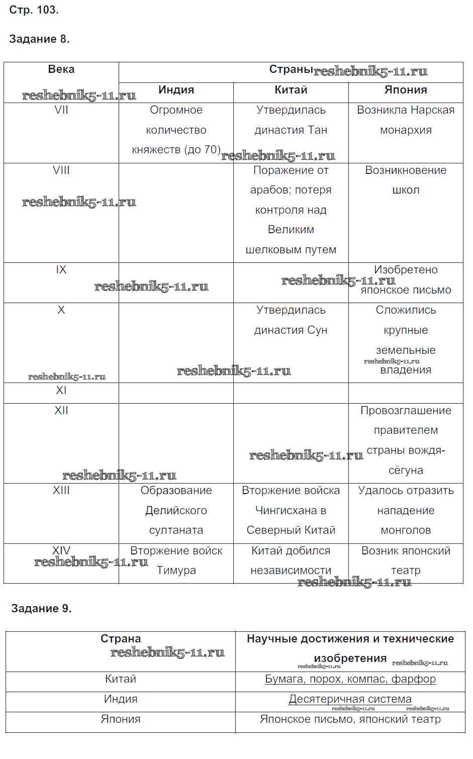 Готовая домашняя работа с ответами по Истории за 6 класс Чернова Рабочая тетрадь УМК Экзамен 2015 ФГОС - Страницы 103