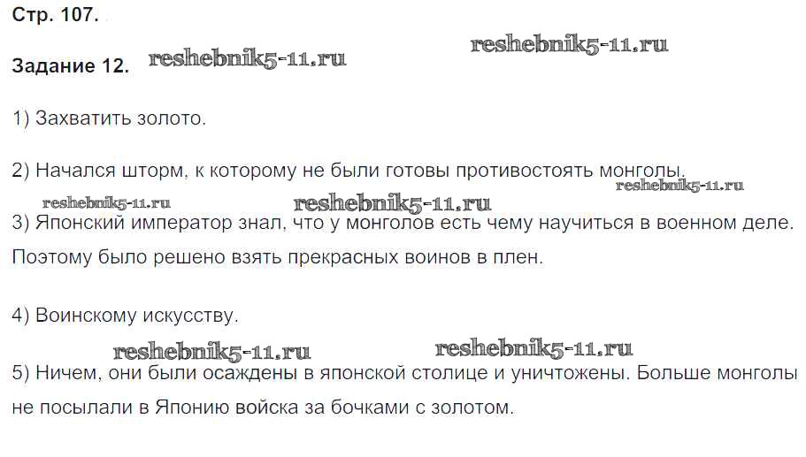 Готовая домашняя работа с ответами по Истории за 6 класс Чернова Рабочая тетрадь УМК Экзамен 2015 ФГОС - Страницы 107