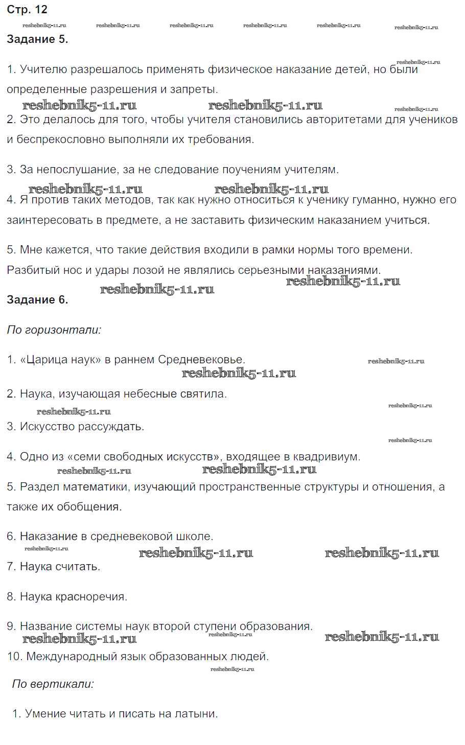 Готовая домашняя работа с ответами по Истории за 6 класс Чернова Рабочая тетрадь УМК Экзамен 2015 ФГОС - Страницы 12