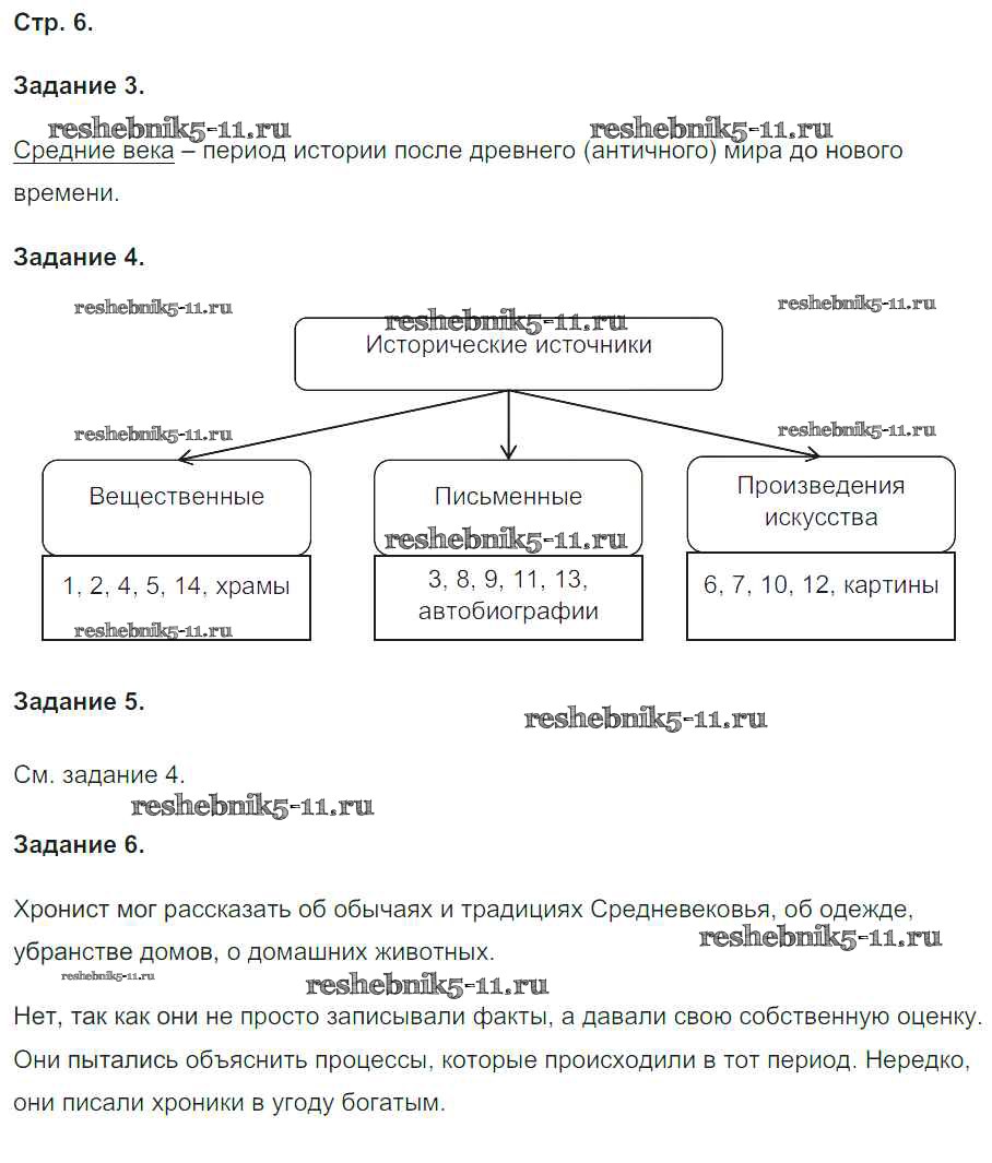 Готовая домашняя работа с ответами по Истории за 6 класс Чернова Рабочая тетрадь УМК Экзамен 2015 ФГОС - Страницы 6