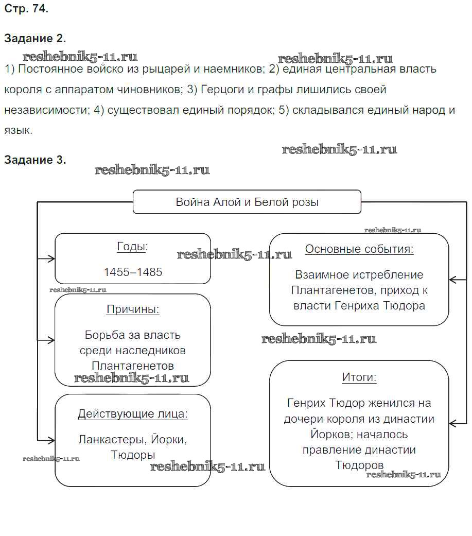 Готовая домашняя работа с ответами по Истории за 6 класс Чернова Рабочая тетрадь УМК Экзамен 2015 ФГОС - Страницы 74
