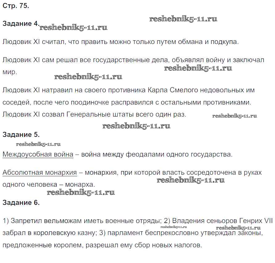 Готовая домашняя работа с ответами по Истории за 6 класс Чернова Рабочая тетрадь УМК Экзамен 2015 ФГОС - Страницы 75