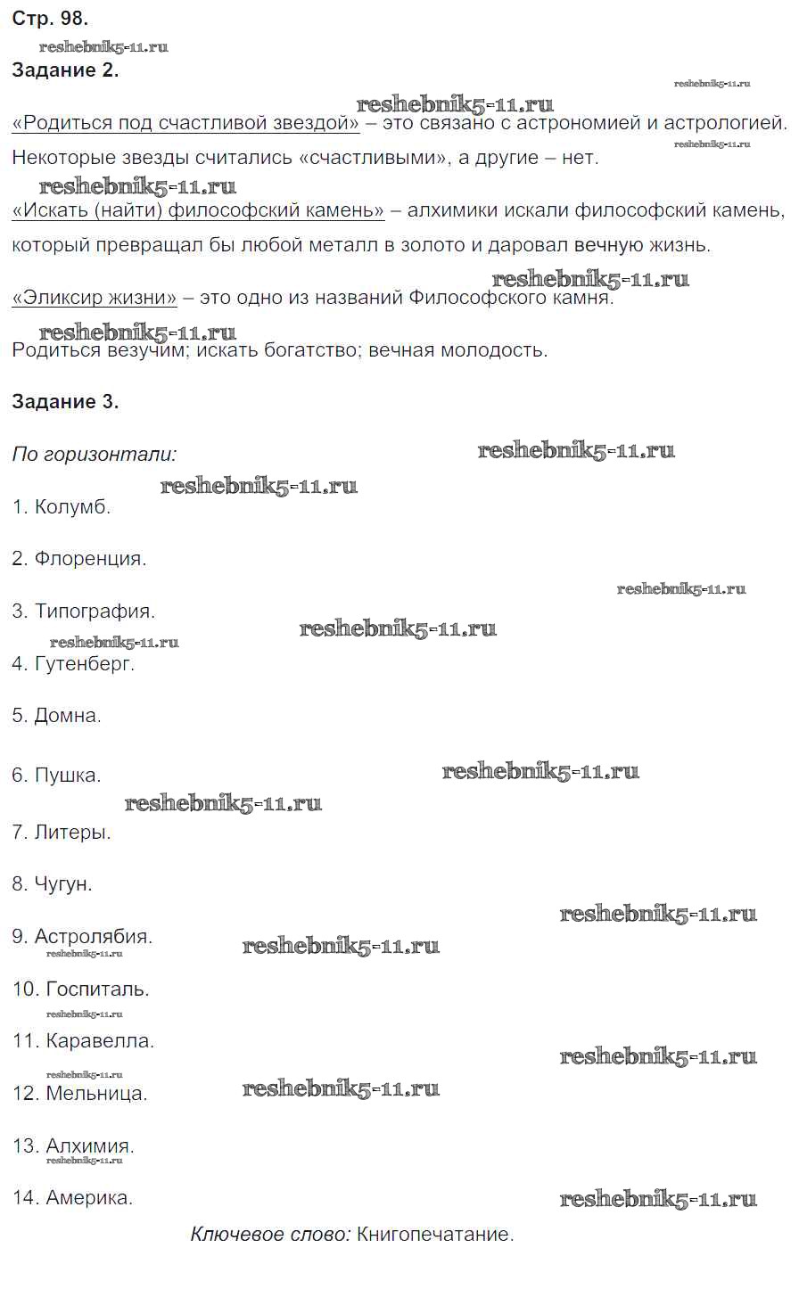 Готовая домашняя работа с ответами по Истории за 6 класс Чернова Рабочая тетрадь УМК Экзамен 2015 ФГОС - Страницы 98