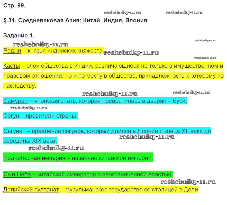 Готовая домашняя работа с ответами по Истории за 6 класс Чернова Рабочая тетрадь УМК Экзамен 2015 ФГОС - Страницы 99