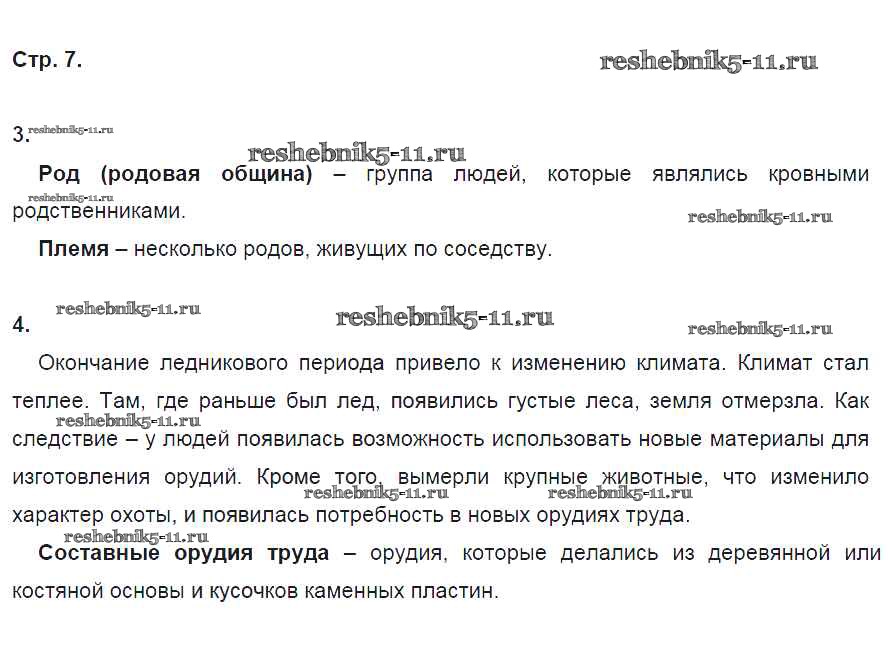 Готовая домашняя работа с ответами по Истории за 6 класс Артасов, Данилов, Косулина, Соколова Рабочая тетрадь Просвещение 2016 ФГОС - §1. Древние люди и их стоянки на территории современной России стр. 7