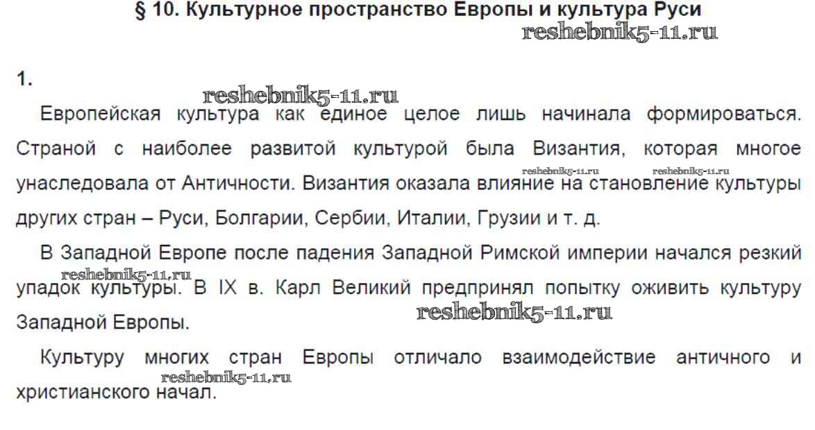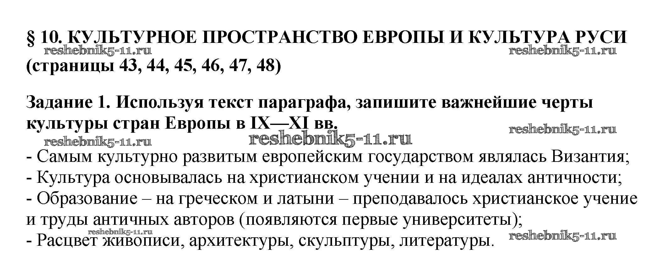 Готовая домашняя работа с ответами по Истории за 6 класс Артасов, Данилов, Косулина, Соколова Рабочая тетрадь Просвещение 2016 ФГОС - §10. Культурное пространство Европы и культура России стр. 43