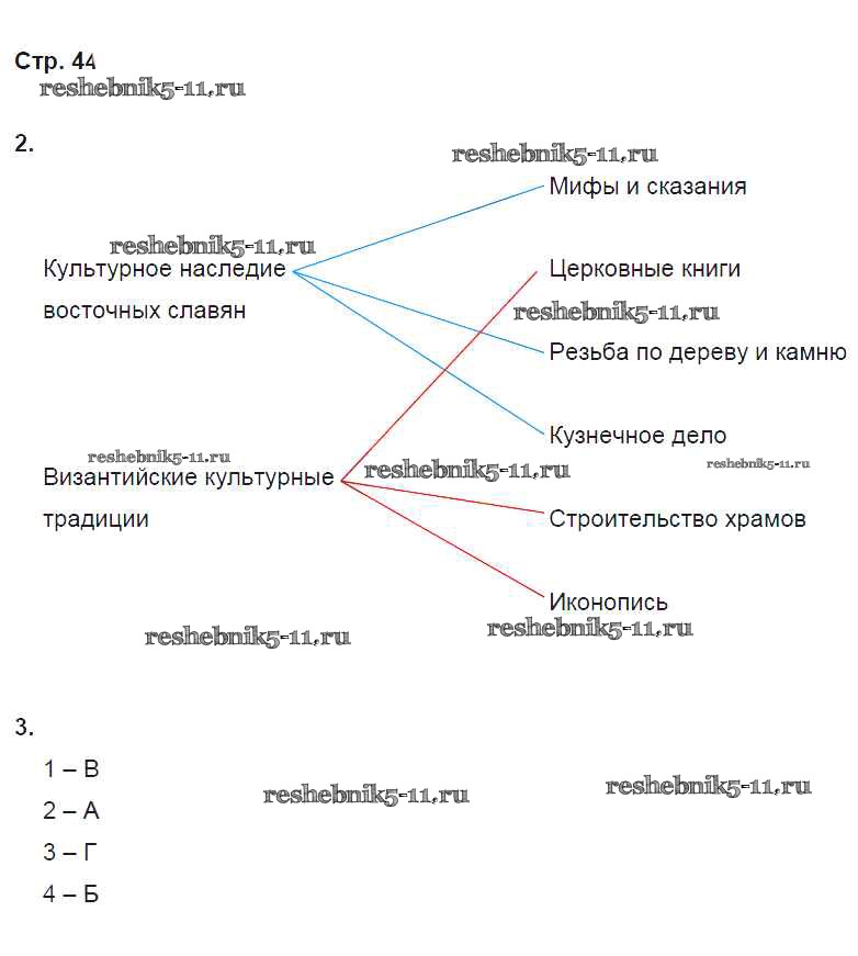 Готовая домашняя работа с ответами по Истории за 6 класс Артасов, Данилов, Косулина, Соколова Рабочая тетрадь Просвещение 2016 ФГОС - §10. Культурное пространство Европы и культура России стр. 44