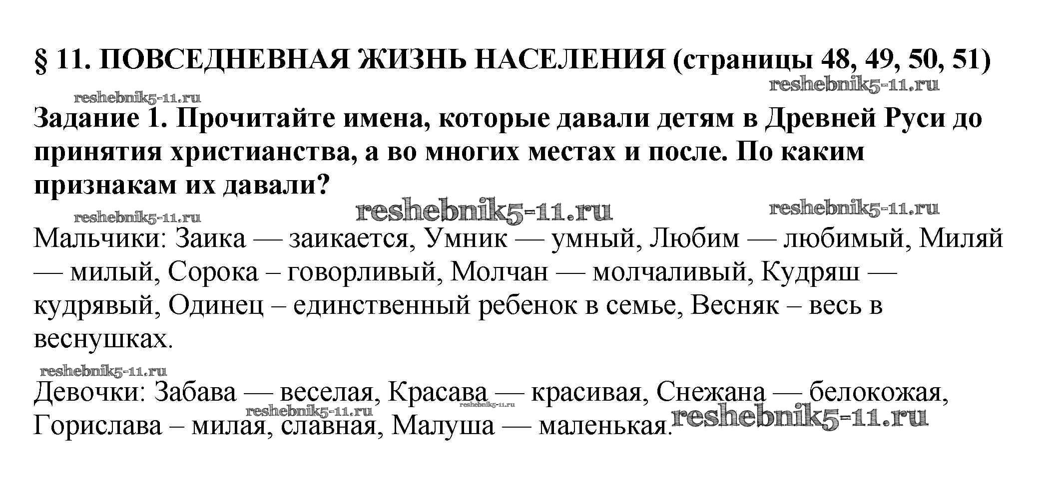 Готовая домашняя работа с ответами по Истории за 6 класс Артасов, Данилов, Косулина, Соколова Рабочая тетрадь Просвещение 2016 ФГОС - §11. Повседневная жизнь населения стр. 48