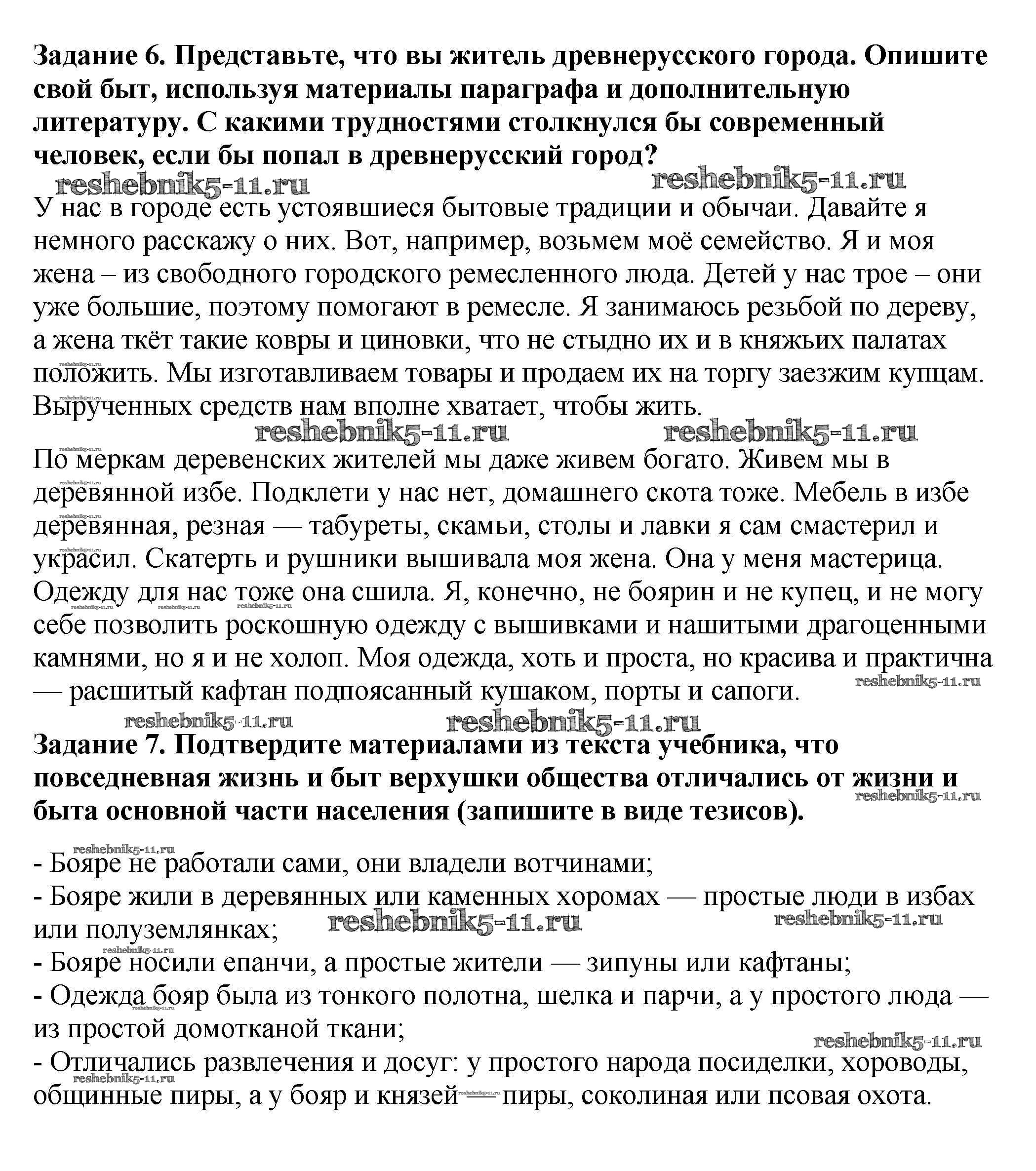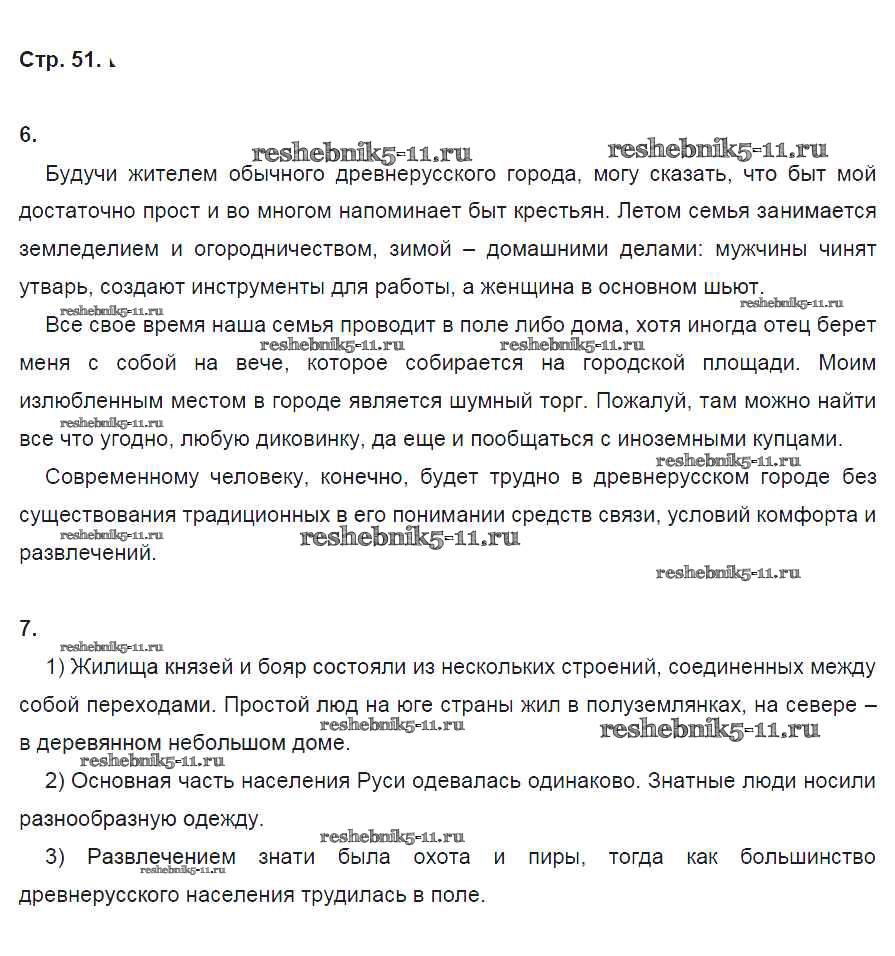 Готовая домашняя работа с ответами по Истории за 6 класс Артасов, Данилов, Косулина, Соколова Рабочая тетрадь Просвещение 2016 ФГОС - §11. Повседневная жизнь населения стр. 51