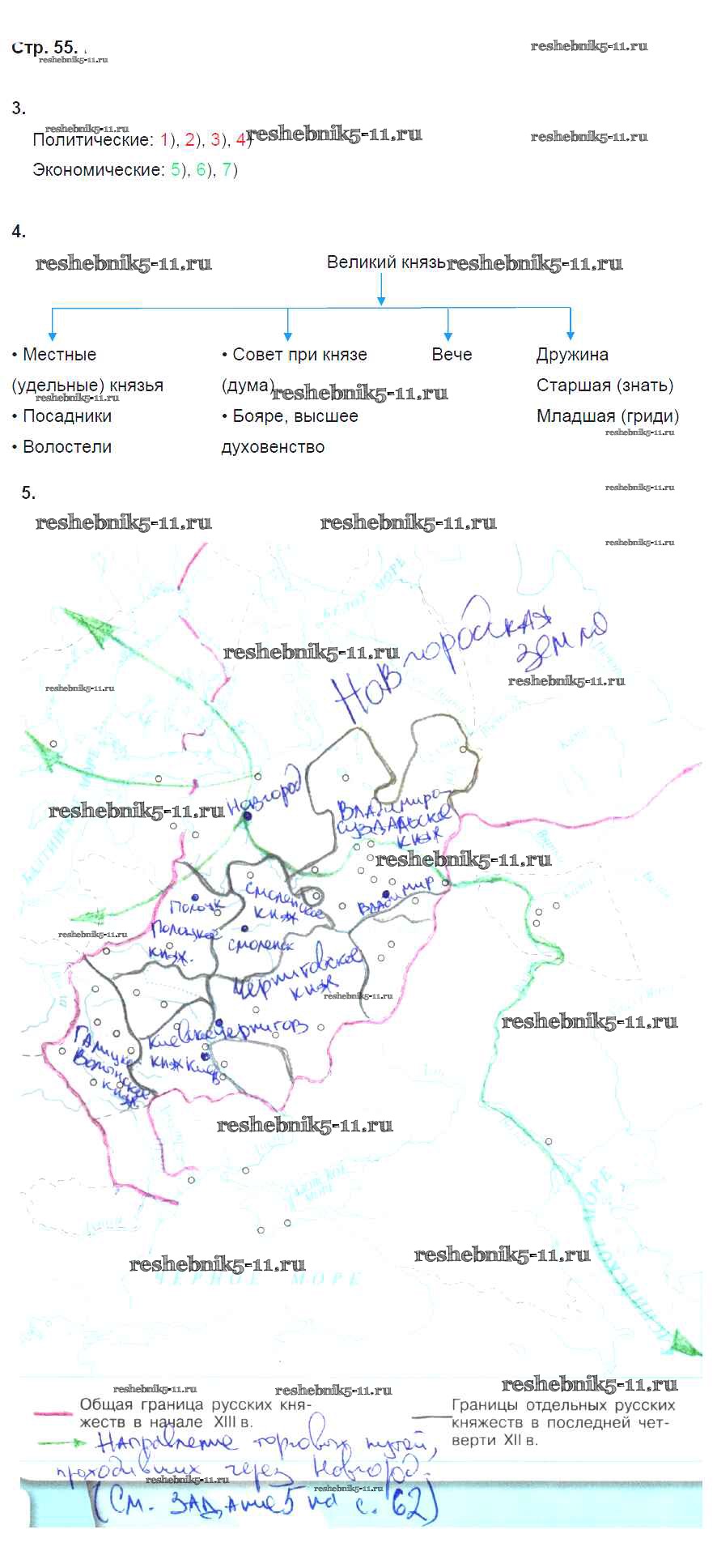 Готовая домашняя работа с ответами по Истории за 6 класс Артасов, Данилов, Косулина, Соколова Рабочая тетрадь Просвещение 2016 ФГОС - §12. Политическая раздробленность на Руси стр. 55