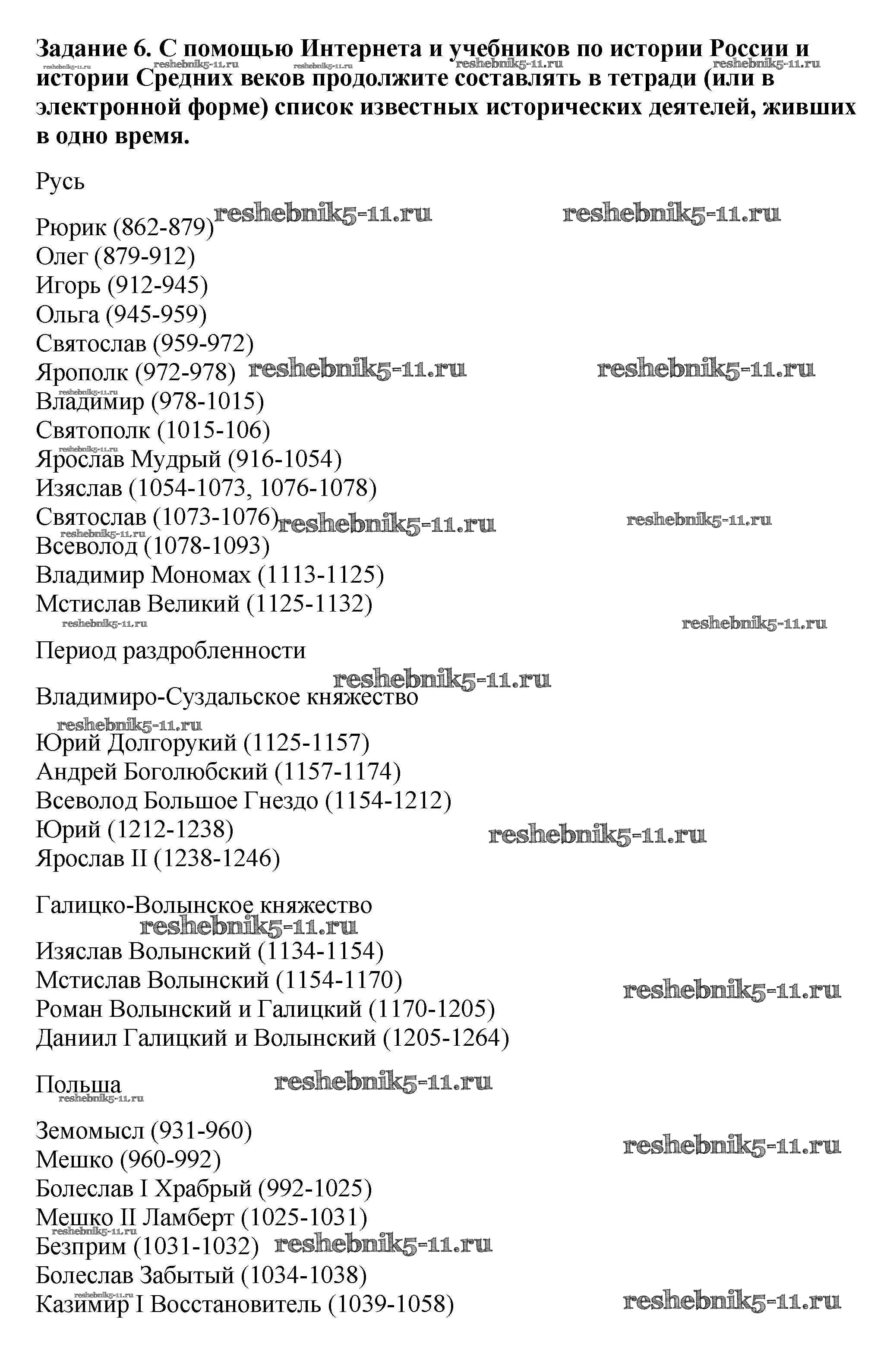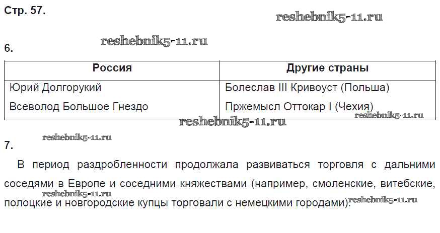 Готовая домашняя работа с ответами по Истории за 6 класс Артасов, Данилов, Косулина, Соколова Рабочая тетрадь Просвещение 2016 ФГОС - §12. Политическая раздробленность на Руси стр. 57