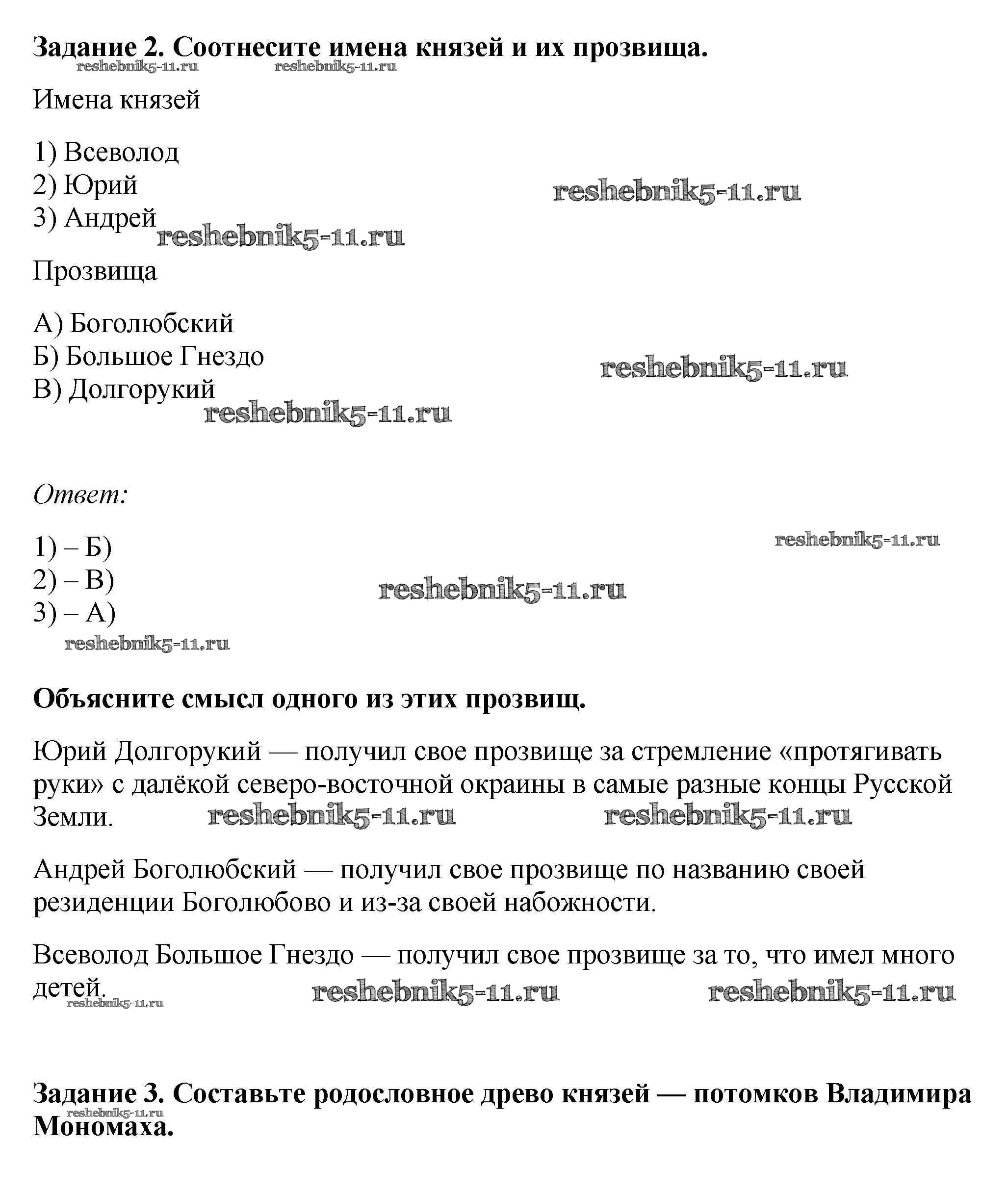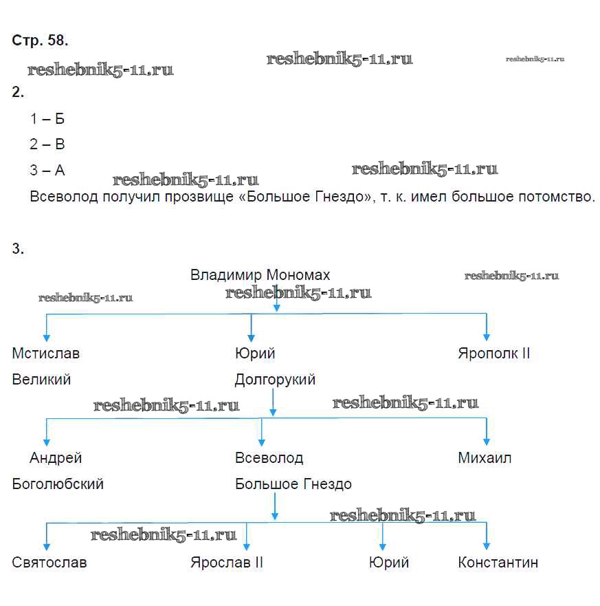 Готовая домашняя работа с ответами по Истории за 6 класс Артасов, Данилов, Косулина, Соколова Рабочая тетрадь Просвещение 2016 ФГОС - §13. Владимиро-суздальское княжество стр. 58