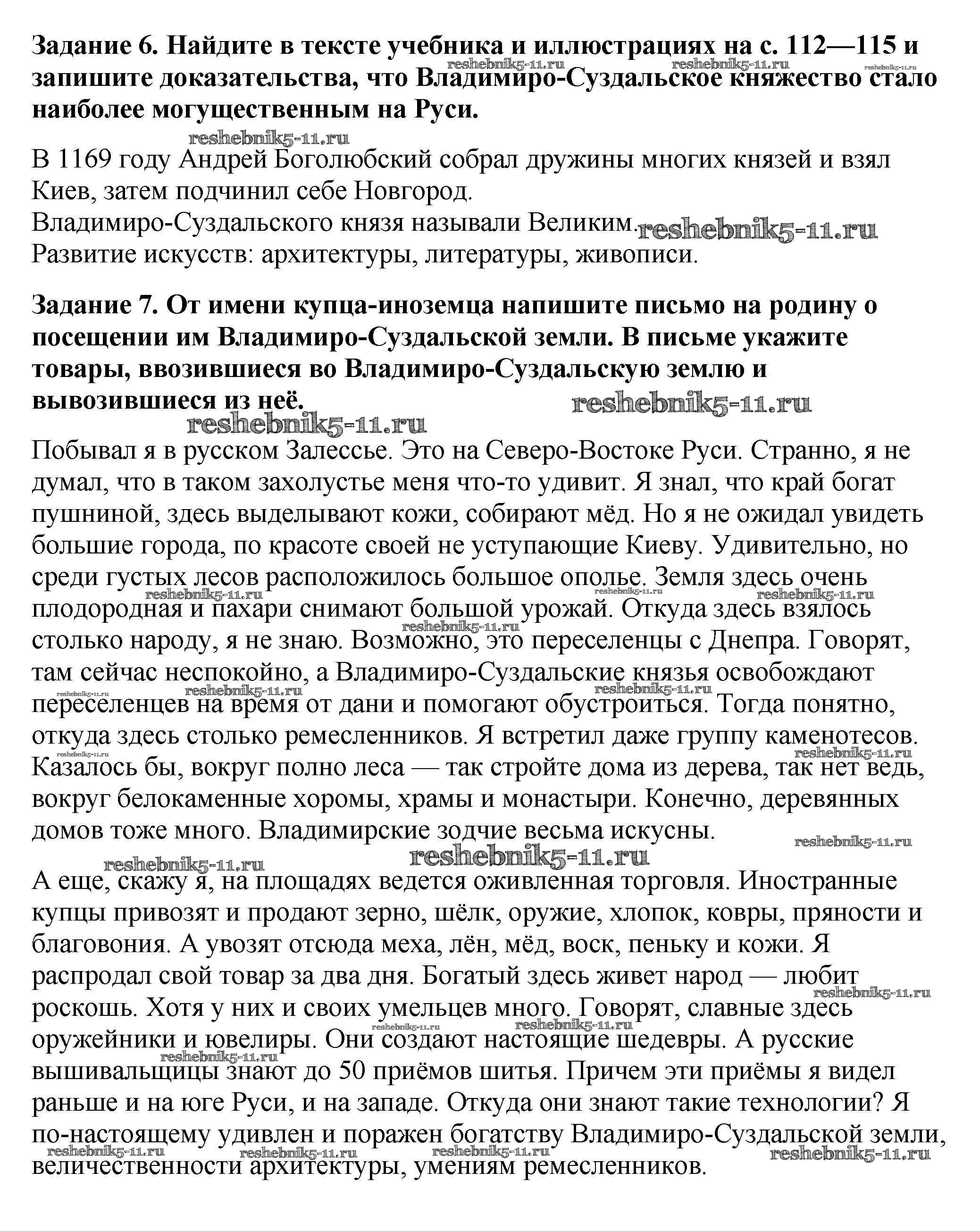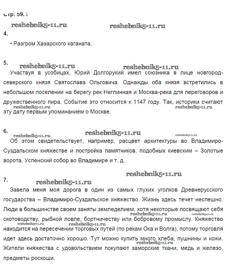 Готовая домашняя работа с ответами по Истории за 6 класс Артасов, Данилов, Косулина, Соколова Рабочая тетрадь Просвещение 2016 ФГОС - §13. Владимиро-суздальское княжество стр. 59