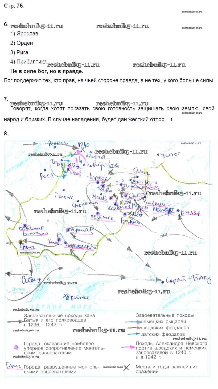 Готовая домашняя работа с ответами по Истории за 6 класс Артасов, Данилов, Косулина, Соколова Рабочая тетрадь Просвещение 2016 ФГОС - §17. Северо-западная Русь между Востоком и Западом стр. 76