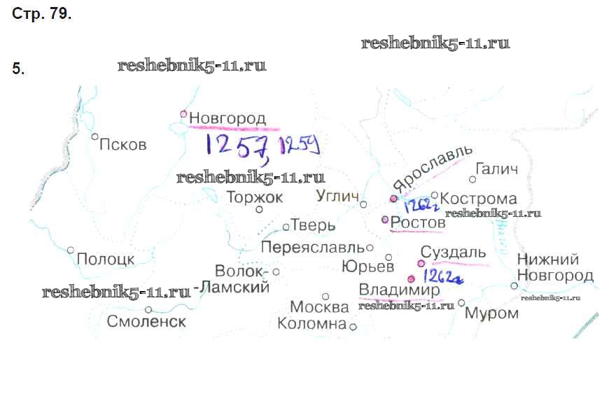 Готовая домашняя работа с ответами по Истории за 6 класс Артасов, Данилов, Косулина, Соколова Рабочая тетрадь Просвещение 2016 ФГОС - §18. Золотая Орда: Государственный строй. Население. Экономика. Культура стр. 79