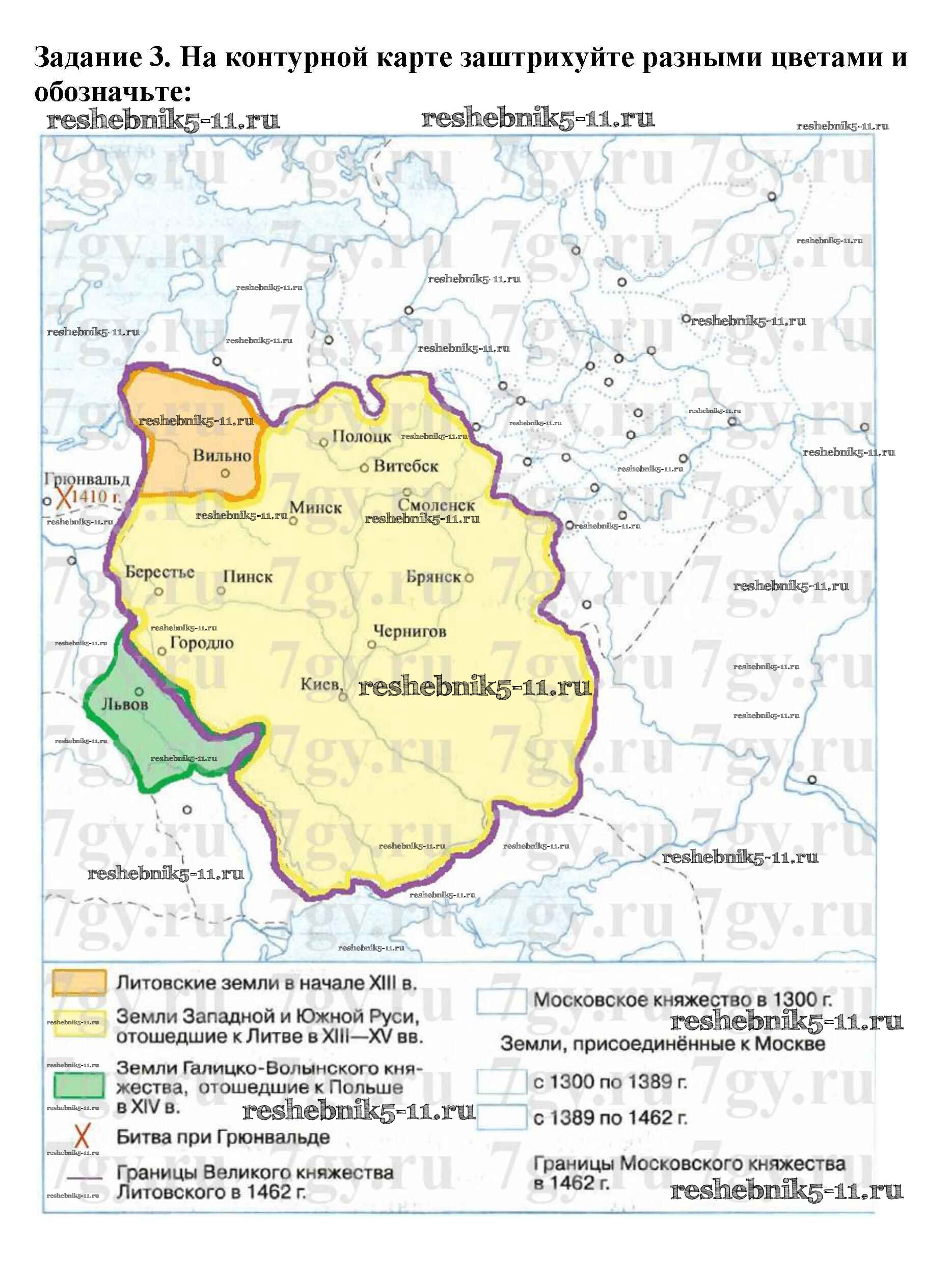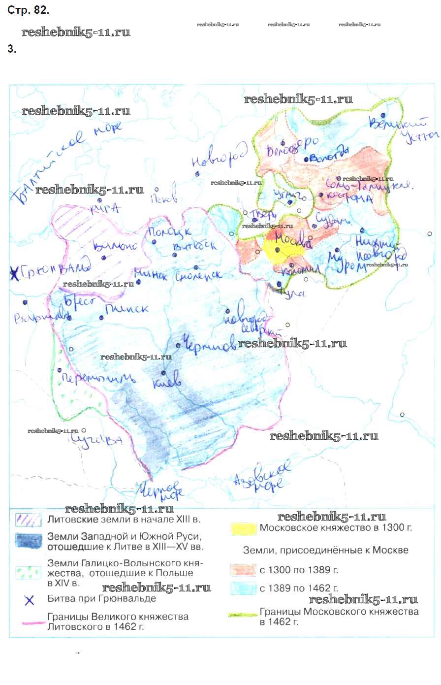 Готовая домашняя работа с ответами по Истории за 6 класс Артасов, Данилов, Косулина, Соколова Рабочая тетрадь Просвещение 2016 ФГОС - §19. Литовское государство стр. 82