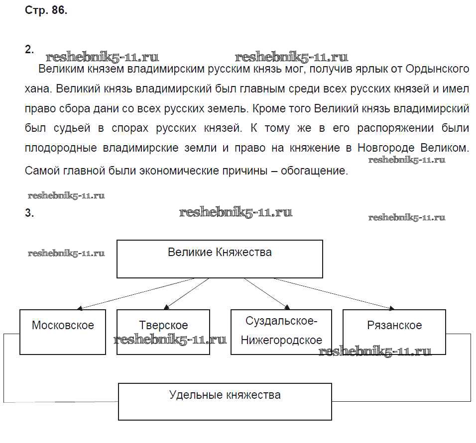 Готовая домашняя работа с ответами по Истории за 6 класс Артасов, Данилов, Косулина, Соколова Рабочая тетрадь Просвещение 2016 ФГОС - §20. Усиление Московского княжества стр. 86