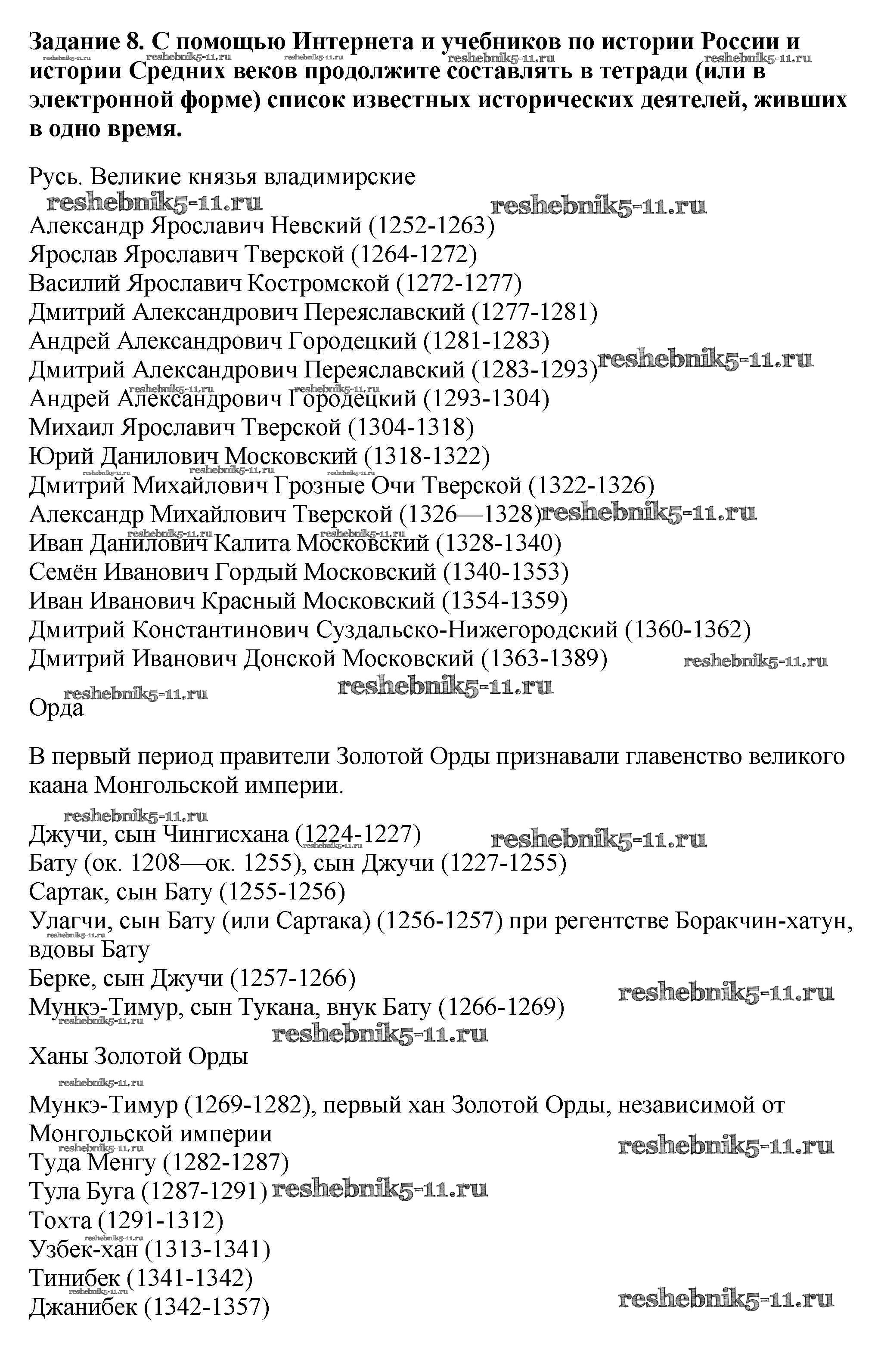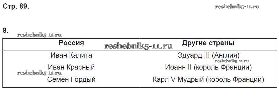 Готовая домашняя работа с ответами по Истории за 6 класс Артасов, Данилов, Косулина, Соколова Рабочая тетрадь Просвещение 2016 ФГОС - §20. Усиление Московского княжества стр. 89