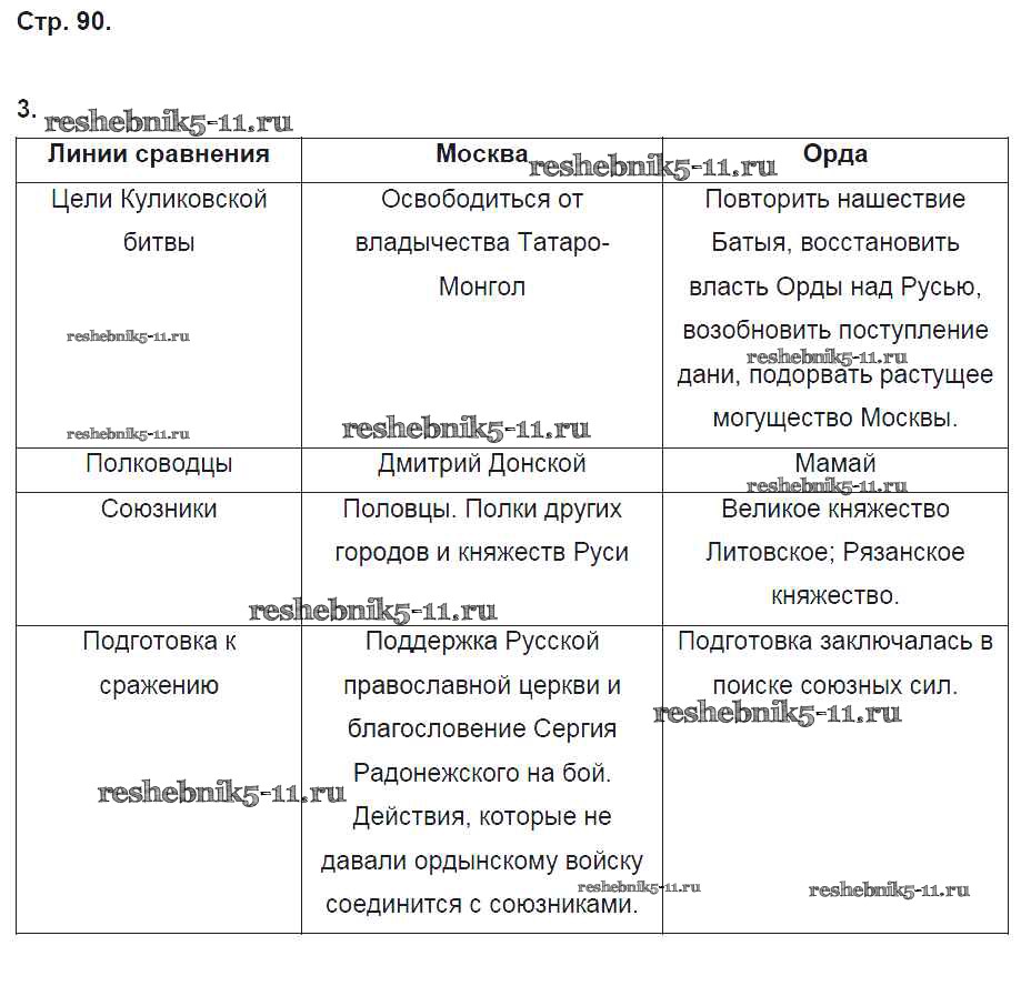Готовая домашняя работа с ответами по Истории за 6 класс Артасов, Данилов, Косулина, Соколова Рабочая тетрадь Просвещение 2016 ФГОС - §21. Объединение русских земель вокруг Москвы. Куликовская битва стр. 90