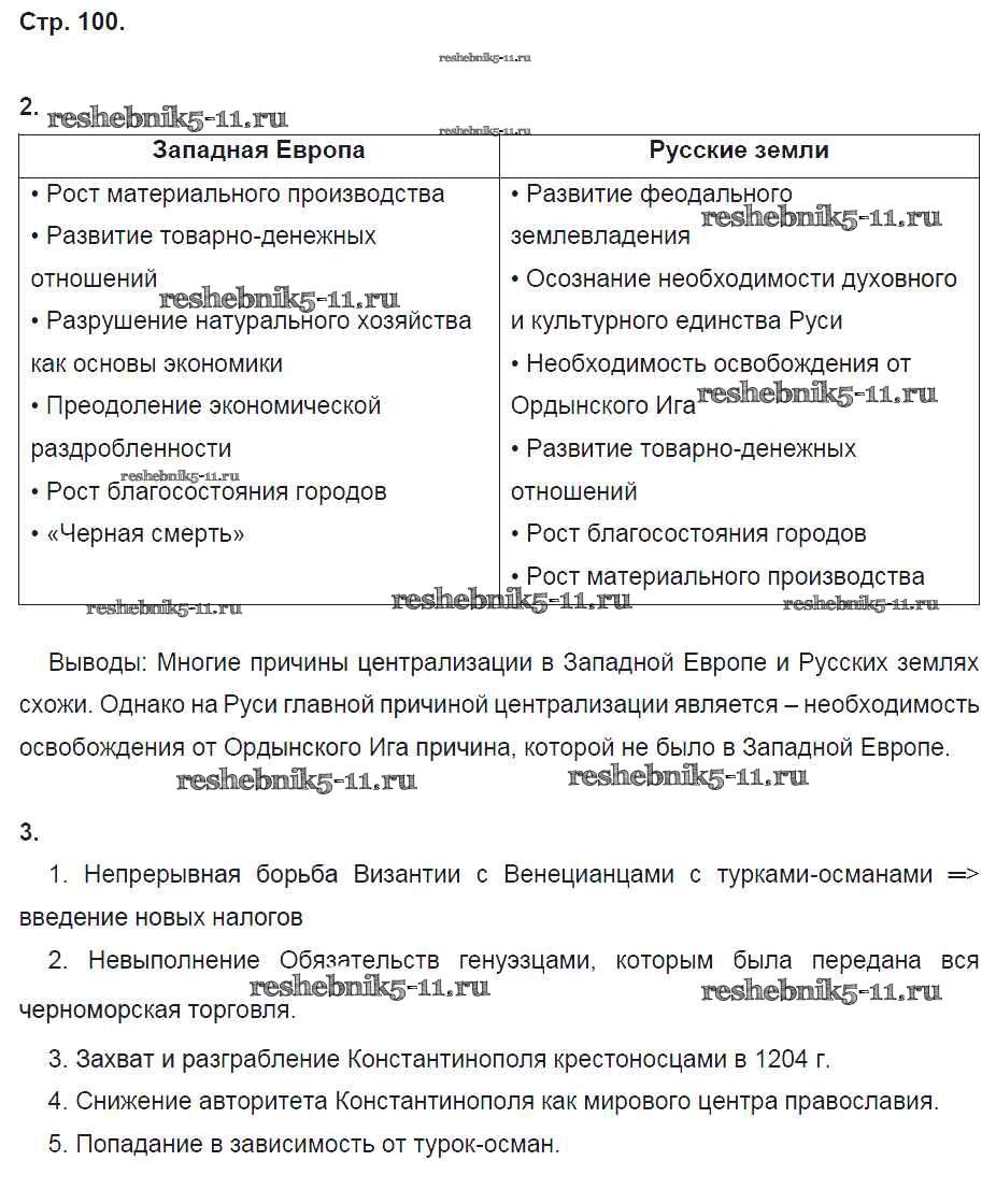 Готовая домашняя работа с ответами по Истории за 6 класс Артасов, Данилов, Косулина, Соколова Рабочая тетрадь Просвещение 2016 ФГОС - §23. Русские земли на политической карте Европы и мира в начале XV в. стр. 100