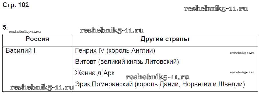 Готовая домашняя работа с ответами по Истории за 6 класс Артасов, Данилов, Косулина, Соколова Рабочая тетрадь Просвещение 2016 ФГОС - §23. Русские земли на политической карте Европы и мира в начале XV в. стр. 102