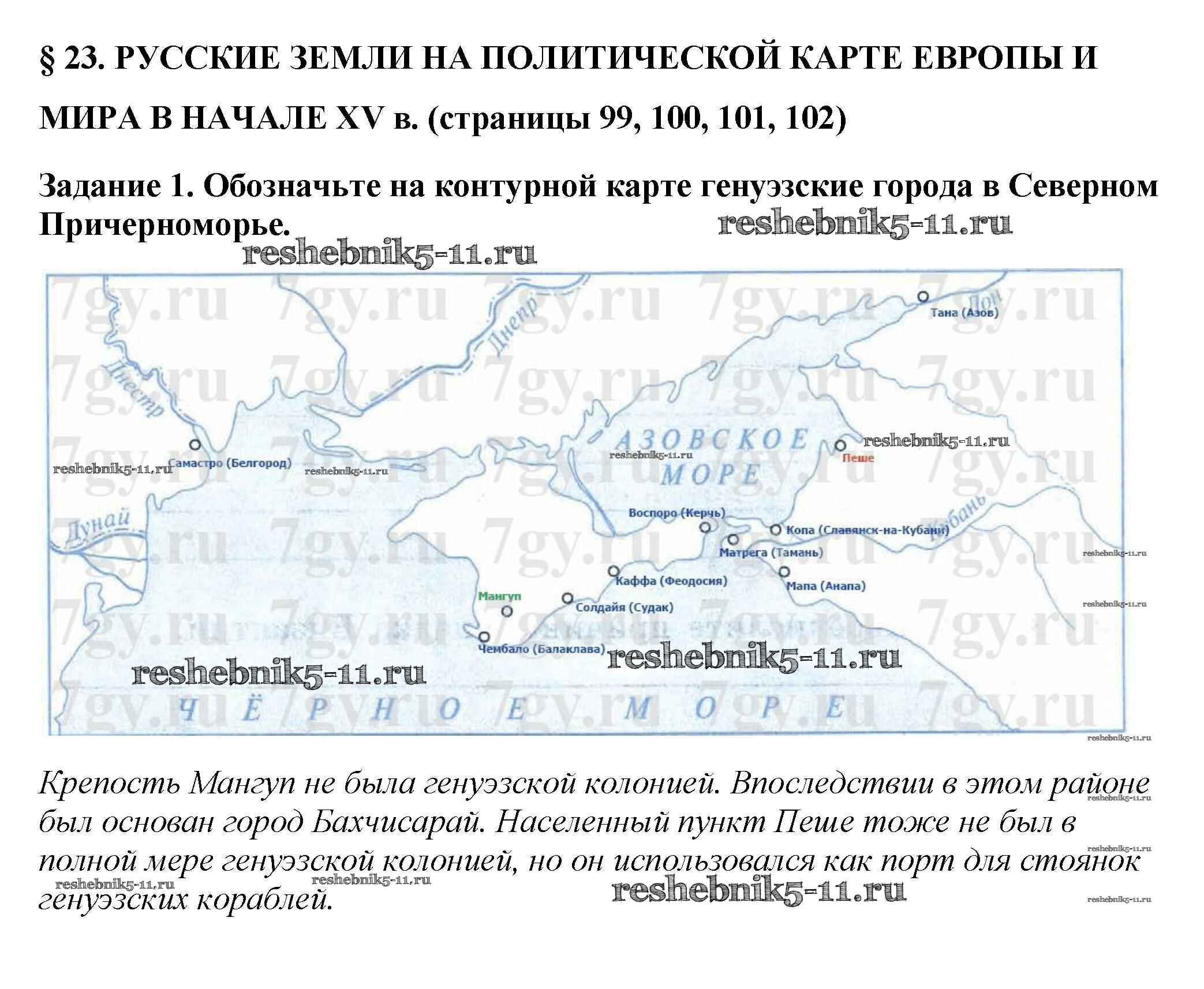 Готовая домашняя работа с ответами по Истории за 6 класс Артасов, Данилов, Косулина, Соколова Рабочая тетрадь Просвещение 2016 ФГОС - §23. Русские земли на политической карте Европы и мира в начале XV в. стр. 99