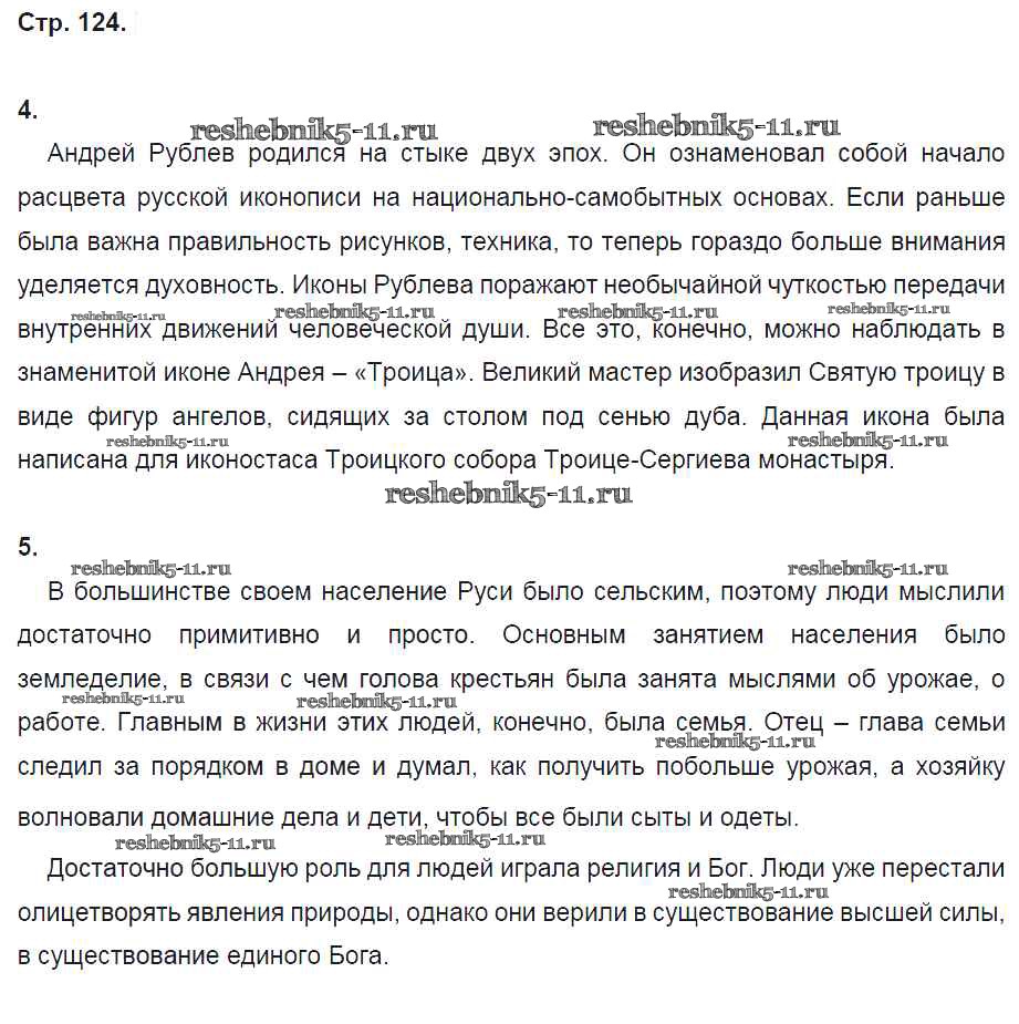 Готовая домашняя работа с ответами по Истории за 6 класс Артасов, Данилов, Косулина, Соколова Рабочая тетрадь Просвещение 2016 ФГОС - §27. Формирование культурного пространства единого Российского государства стр. 124