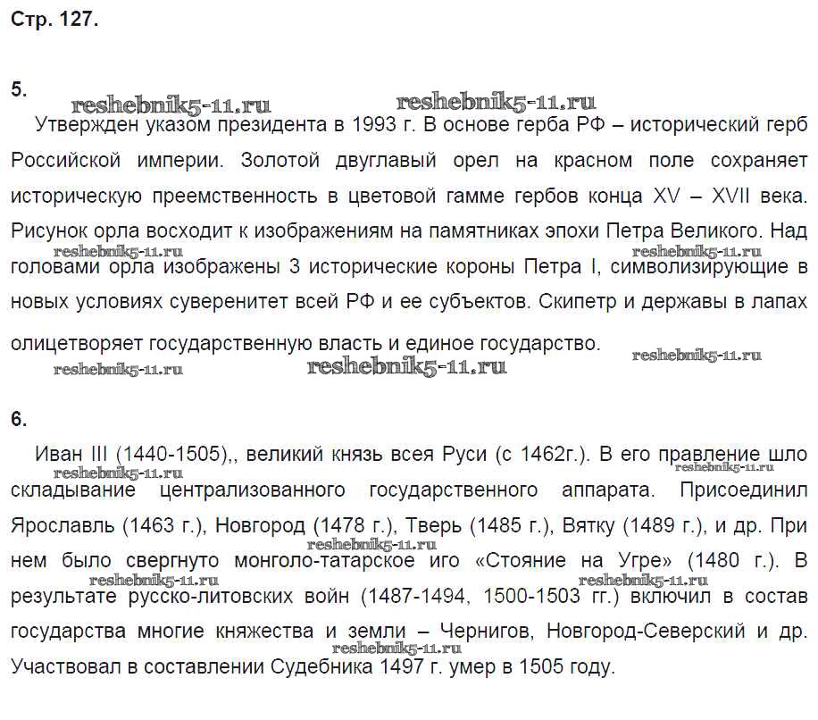Готовая домашняя работа с ответами по Истории за 6 класс Артасов, Данилов, Косулина, Соколова Рабочая тетрадь Просвещение 2016 ФГОС - §27. Формирование культурного пространства единого Российского государства стр. 127