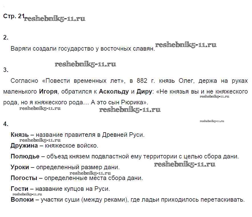 Готовая домашняя работа с ответами по Истории за 6 класс Артасов, Данилов, Косулина, Соколова Рабочая тетрадь Просвещение 2016 ФГОС - §5. Становление Древнерусского государства стр. 21