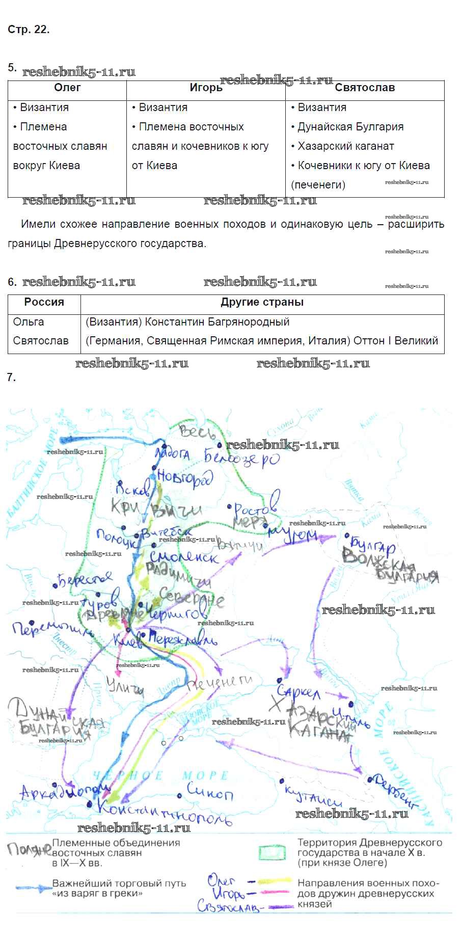 Готовая домашняя работа с ответами по Истории за 6 класс Артасов, Данилов, Косулина, Соколова Рабочая тетрадь Просвещение 2016 ФГОС - §5. Становление Древнерусского государства стр. 22