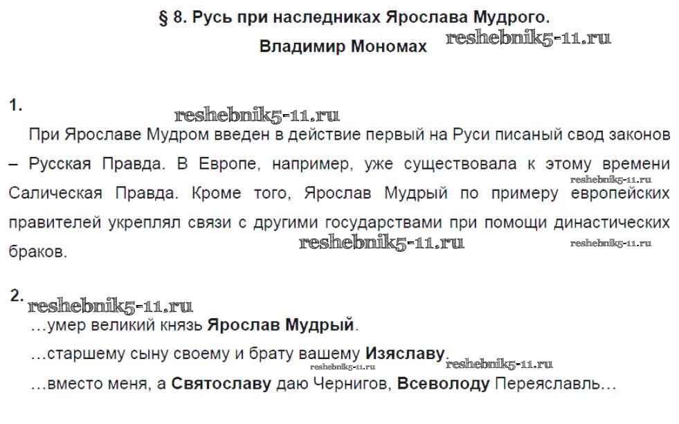 §8. Русь при наследниках Ярослава Мудрого. Владимир Мономах