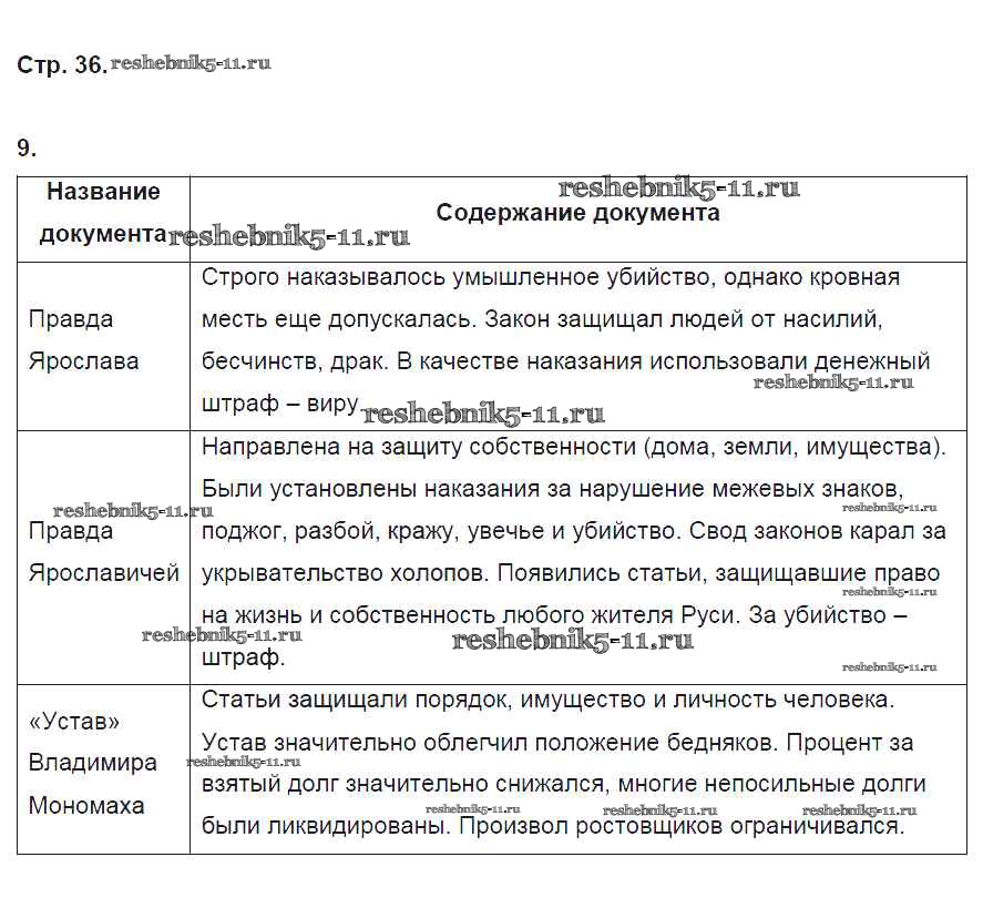 Готовая домашняя работа с ответами по Истории за 6 класс Артасов, Данилов, Косулина, Соколова Рабочая тетрадь Просвещение 2016 ФГОС - §8. Русь при наследниках Ярослава Мудрого. Владимир Мономах стр. 36