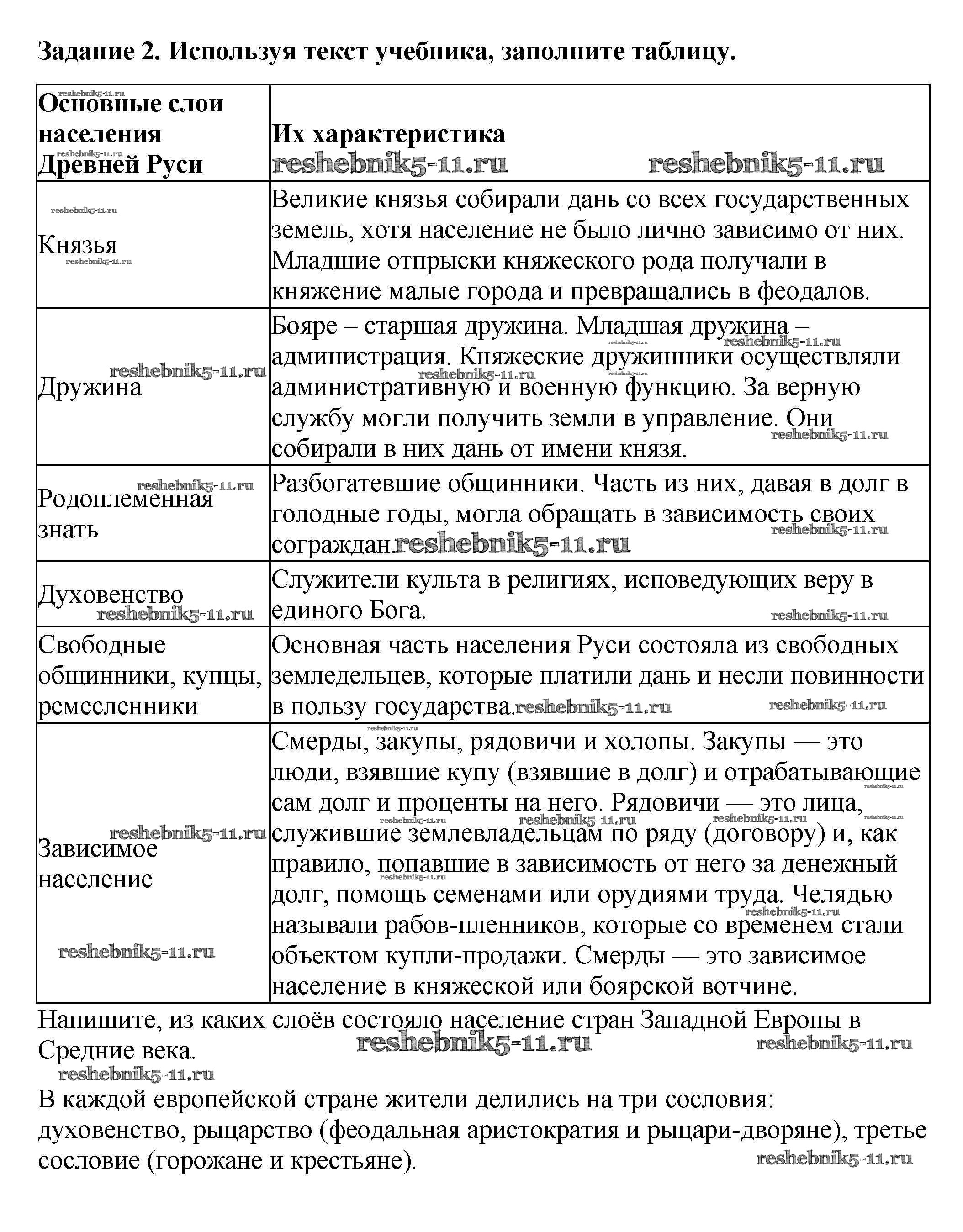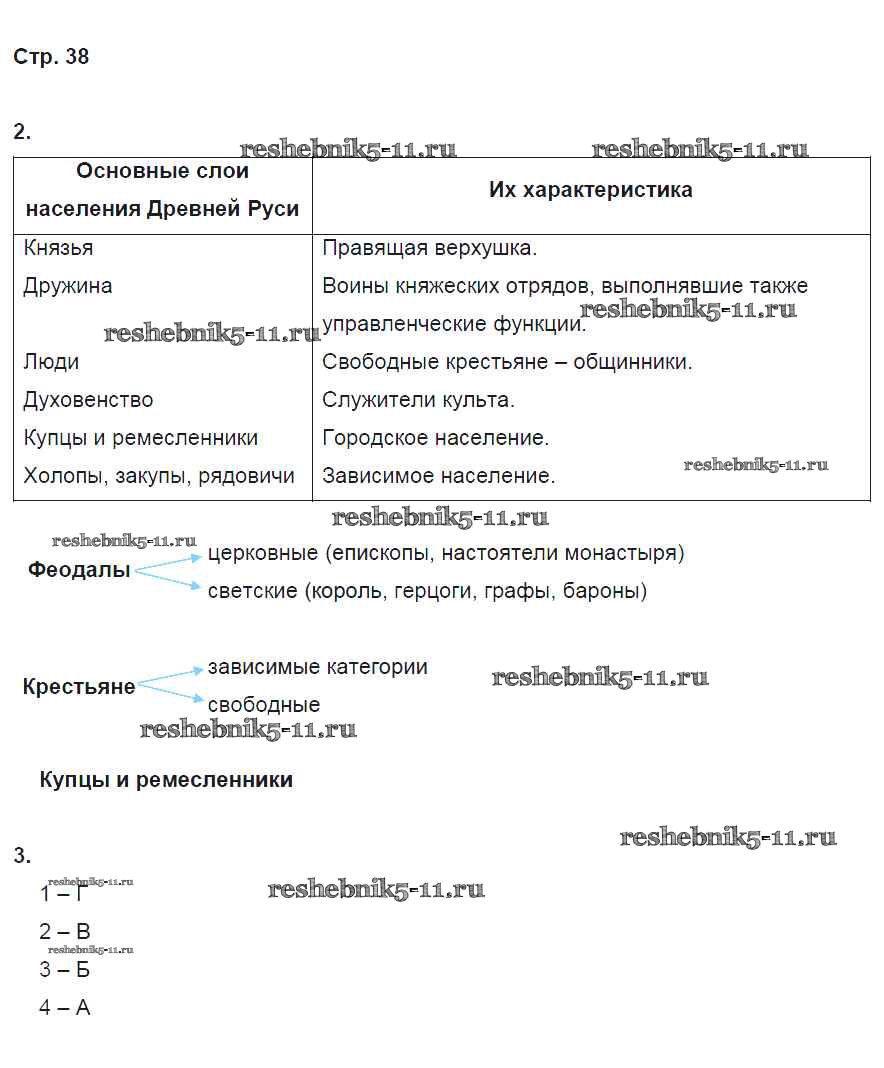 Готовая домашняя работа с ответами по Истории за 6 класс Артасов, Данилов, Косулина, Соколова Рабочая тетрадь Просвещение 2016 ФГОС - §9. Общественный строй и церковная организация на Руси стр. 38