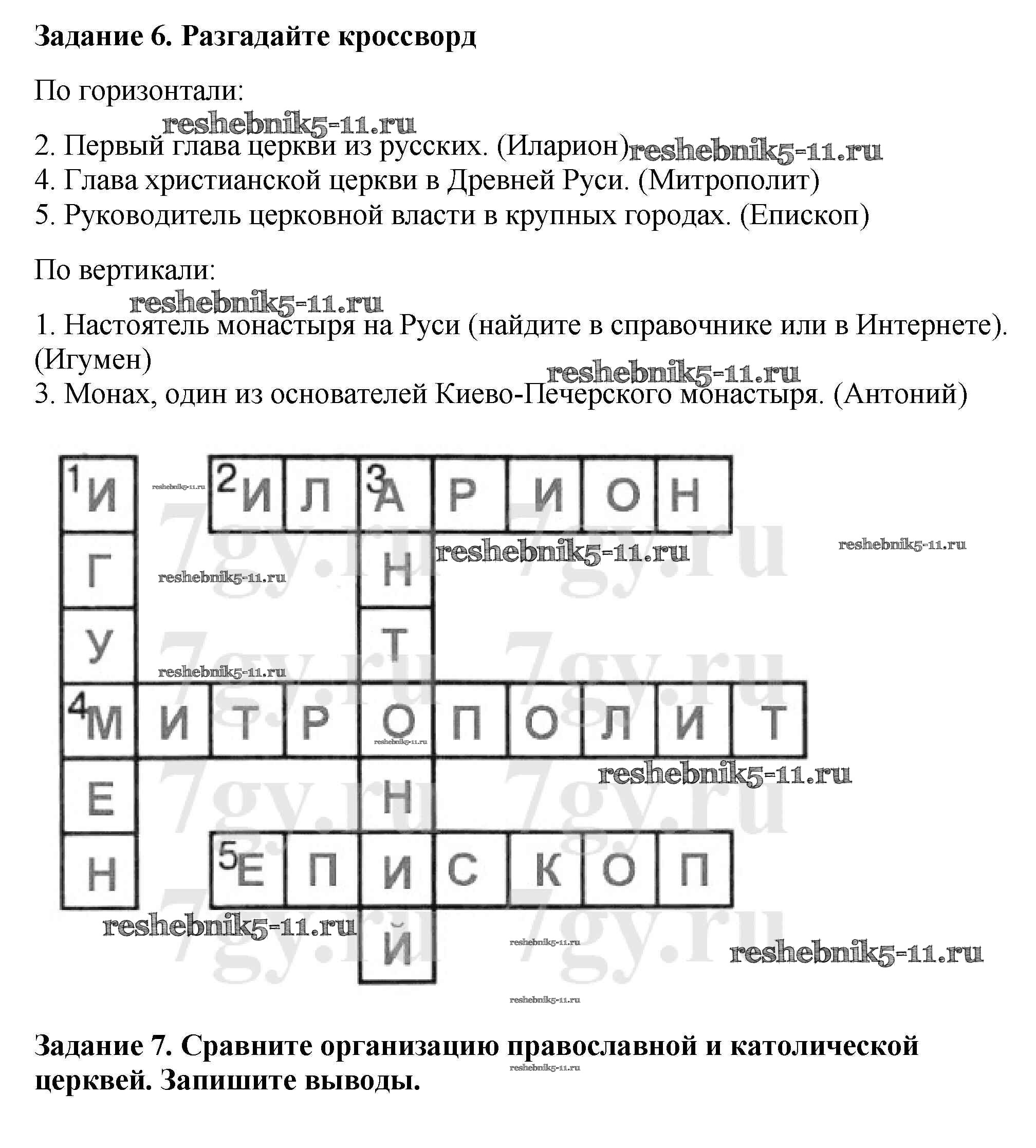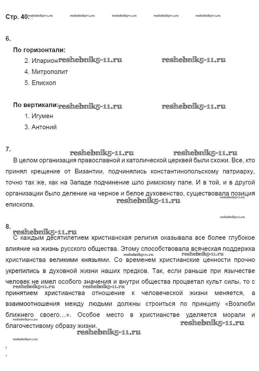 Готовая домашняя работа с ответами по Истории за 6 класс Артасов, Данилов, Косулина, Соколова Рабочая тетрадь Просвещение 2016 ФГОС - §9. Общественный строй и церковная организация на Руси стр. 40