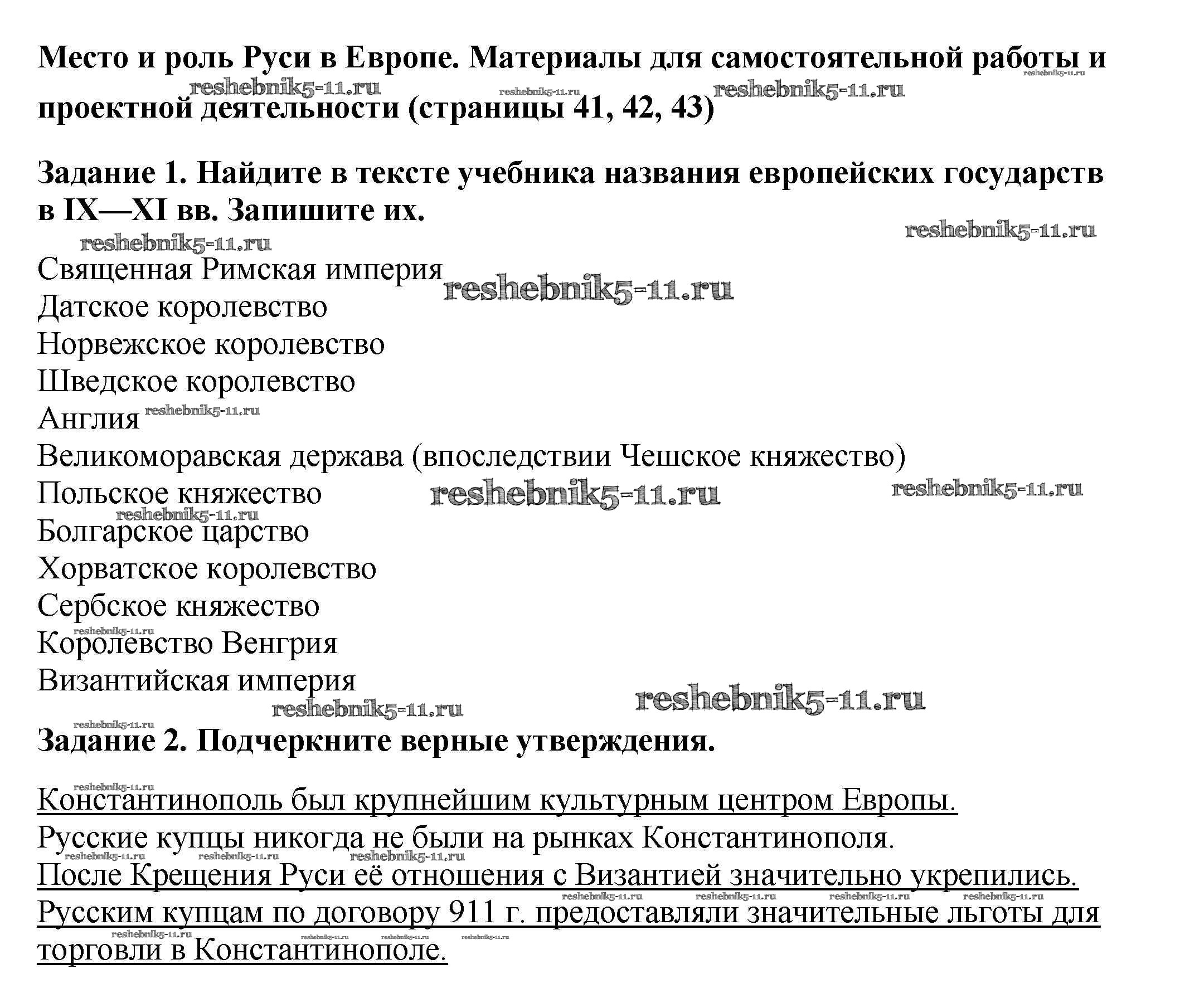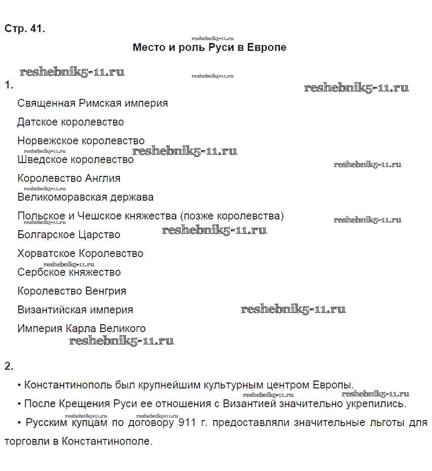 Готовая домашняя работа с ответами по Истории за 6 класс Артасов, Данилов, Косулина, Соколова Рабочая тетрадь Просвещение 2016 ФГОС - §9. Общественный строй и церковная организация на Руси стр. 41