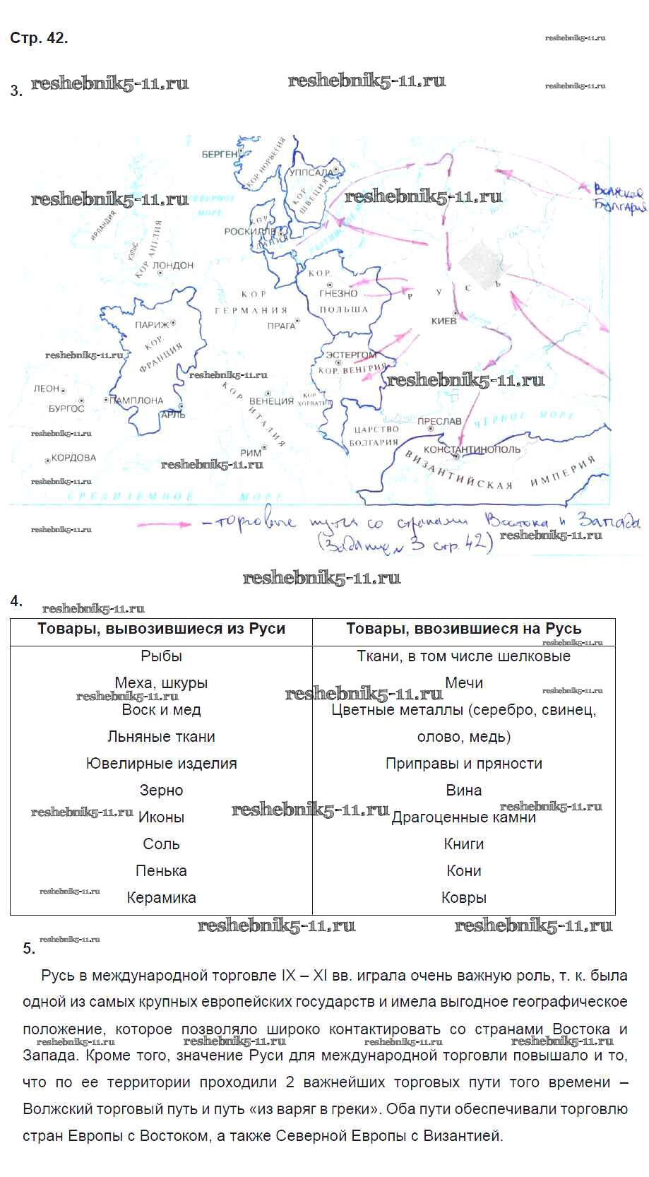 Готовая домашняя работа с ответами по Истории за 6 класс Артасов, Данилов, Косулина, Соколова Рабочая тетрадь Просвещение 2016 ФГОС - §9. Общественный строй и церковная организация на Руси стр. 42