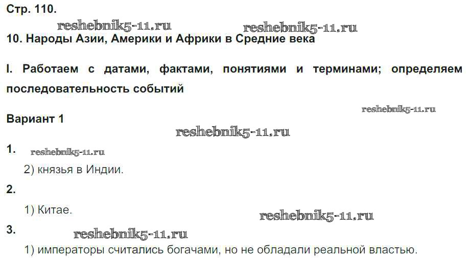 Готовая домашняя работа с ответами по Истории за 6 класс Чернова Рабочая тетрадь УМК Экзамен 2019 ФГОС - Страницы 110