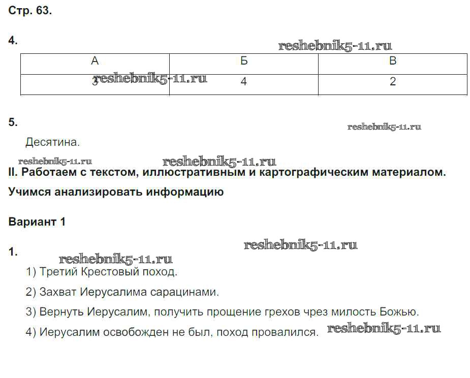 Готовая домашняя работа с ответами по Истории за 6 класс Чернова Рабочая тетрадь УМК Экзамен 2019 ФГОС - Страницы 63