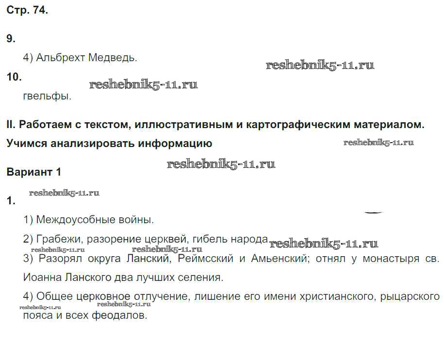 Готовая домашняя работа с ответами по Истории за 6 класс Чернова Рабочая тетрадь УМК Экзамен 2019 ФГОС - Страницы 74