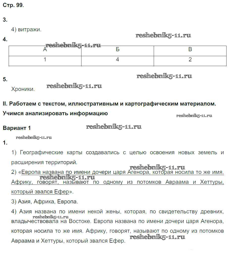 Готовая домашняя работа с ответами по Истории за 6 класс Чернова Рабочая тетрадь УМК Экзамен 2019 ФГОС - Страницы 99