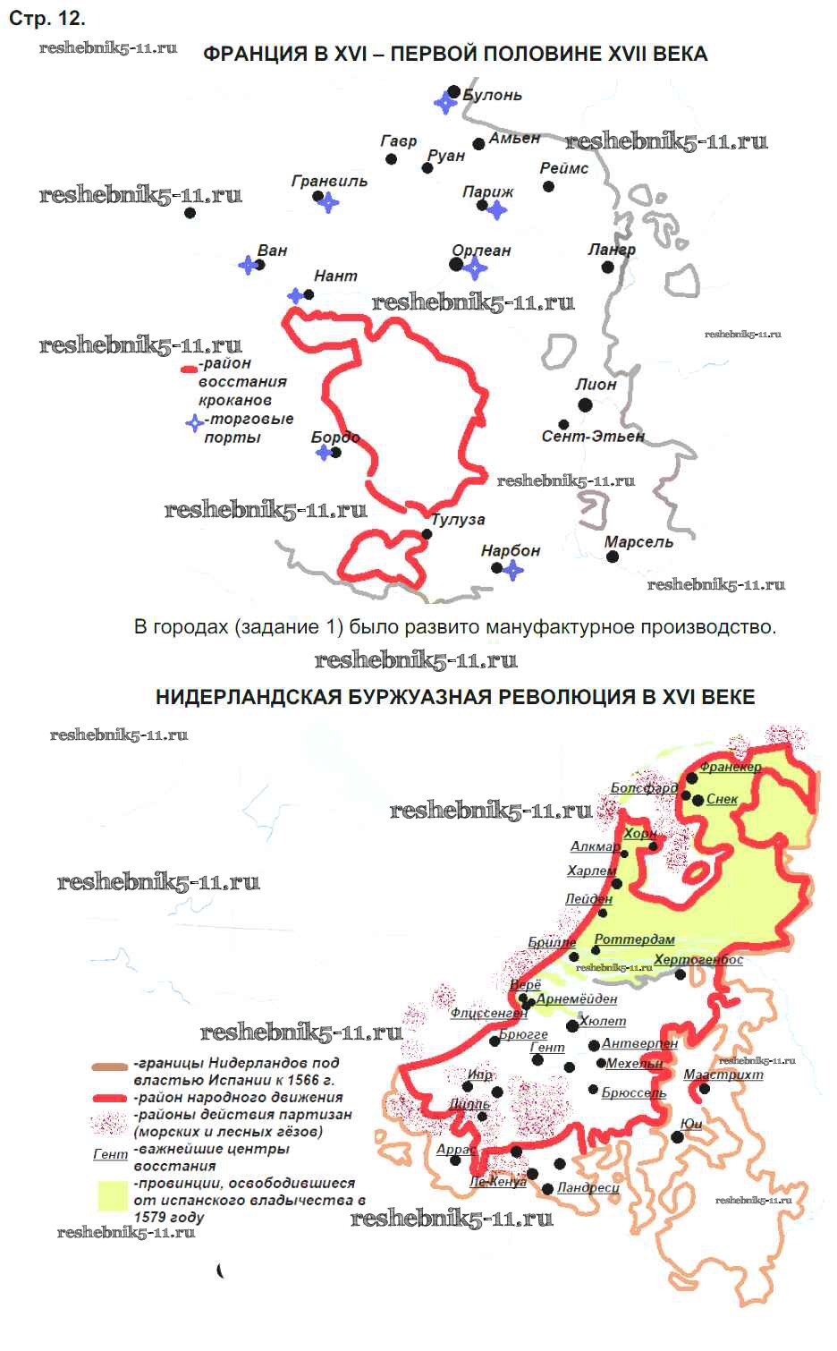 Решебник / страница / страница 12 Франция в XVI- первой половине XVII века. Нидерландская буржуазная революция