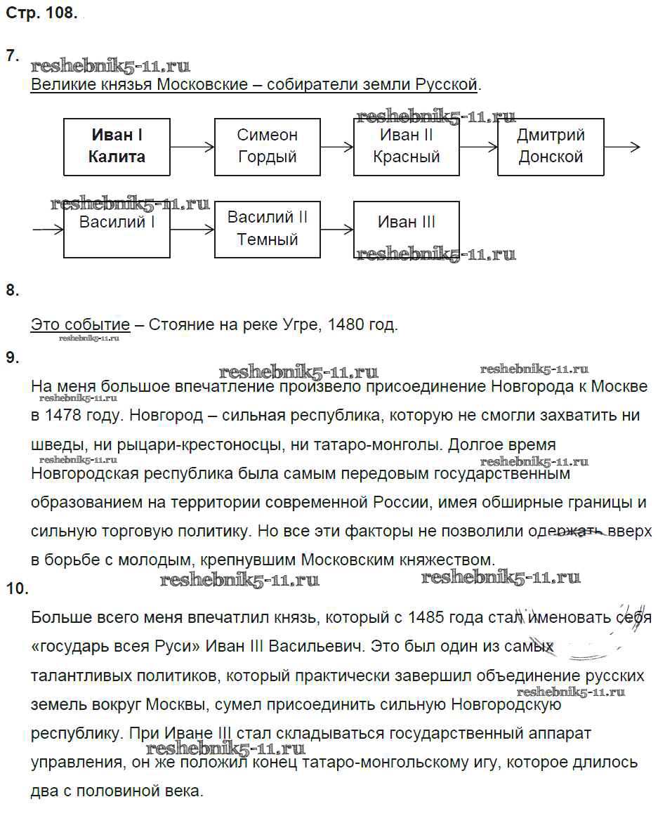 Готовая домашняя работа с ответами по Истории за 6 класс Баранов Рабочая тетрадь Алгоритм успеха Вентана-граф 2017 ФГОС - Страницы тетради 108