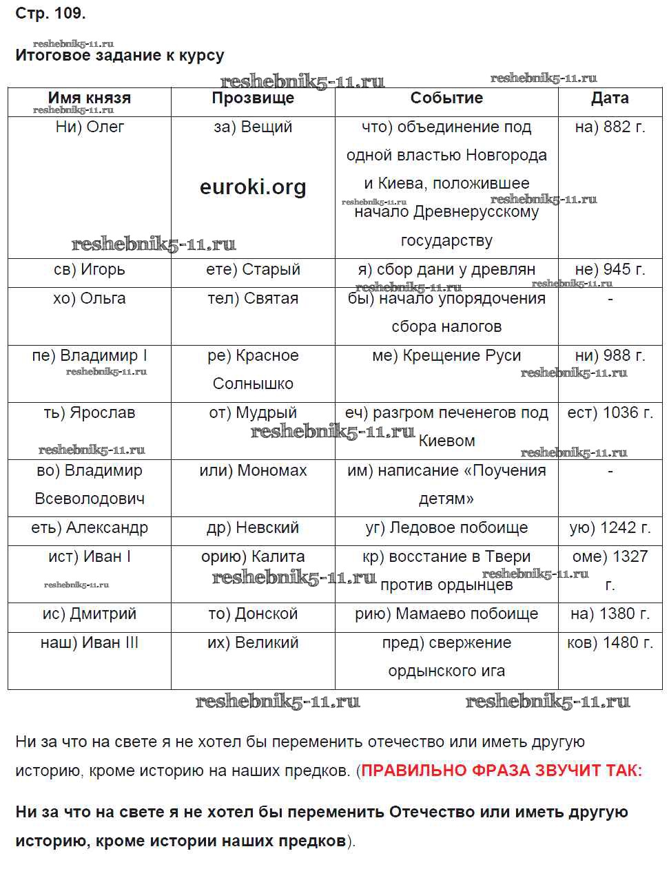 Готовая домашняя работа с ответами по Истории за 6 класс Баранов Рабочая тетрадь Алгоритм успеха Вентана-граф 2017 ФГОС - Страницы тетради 109